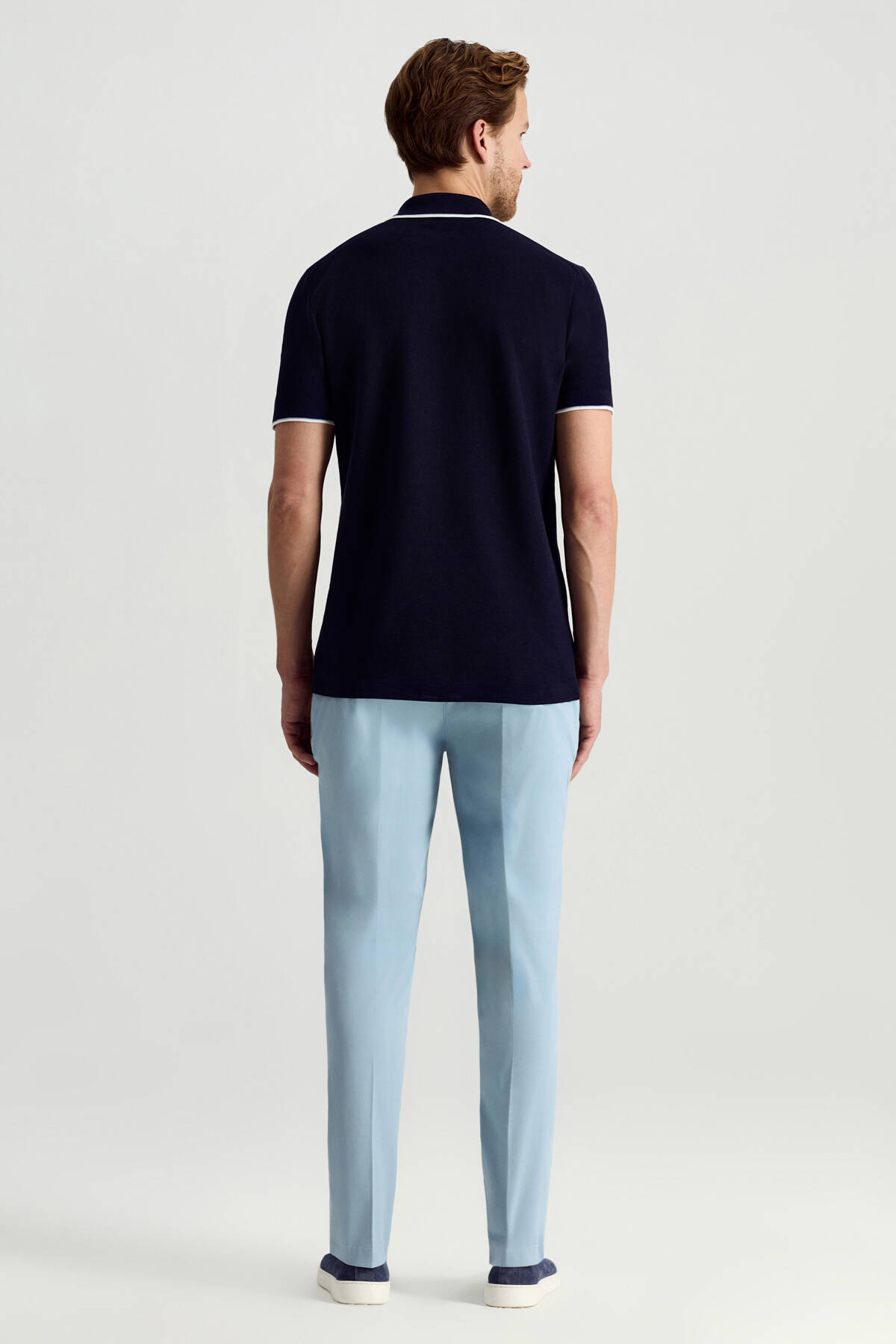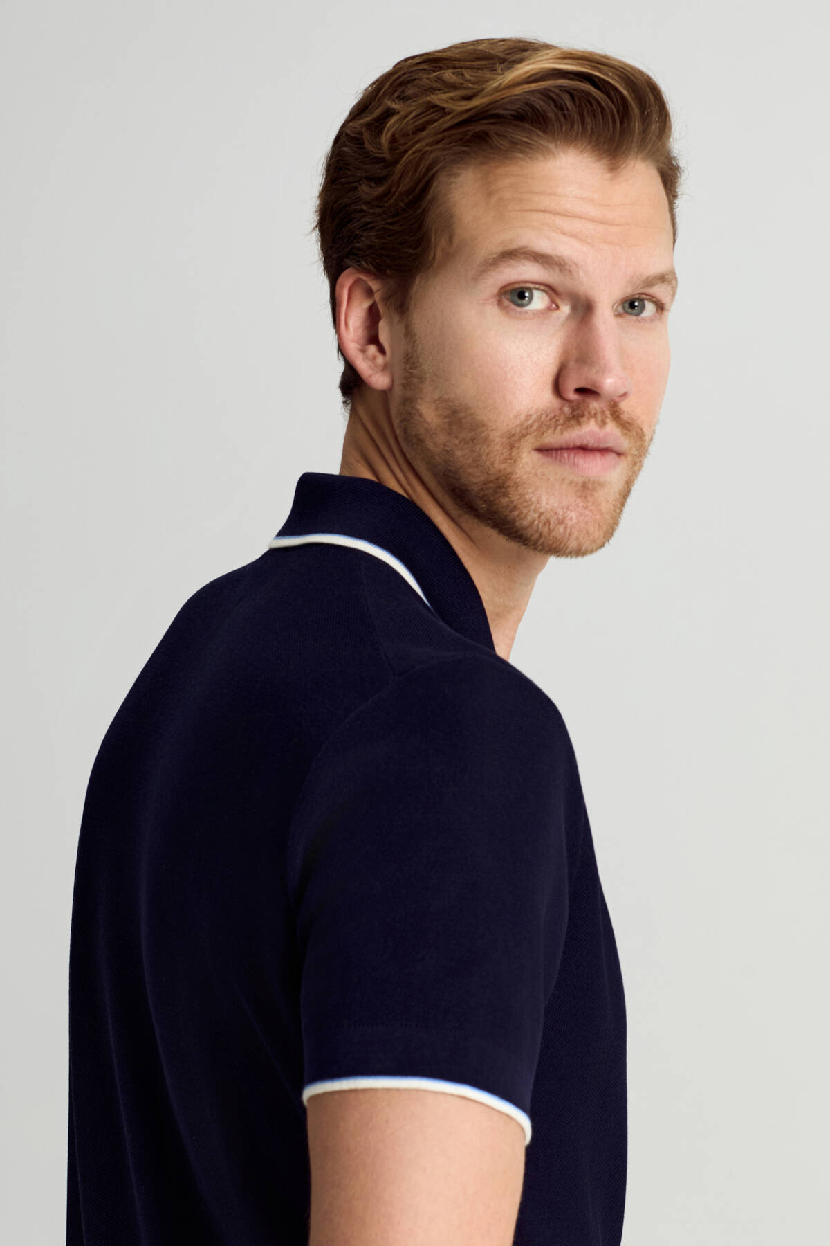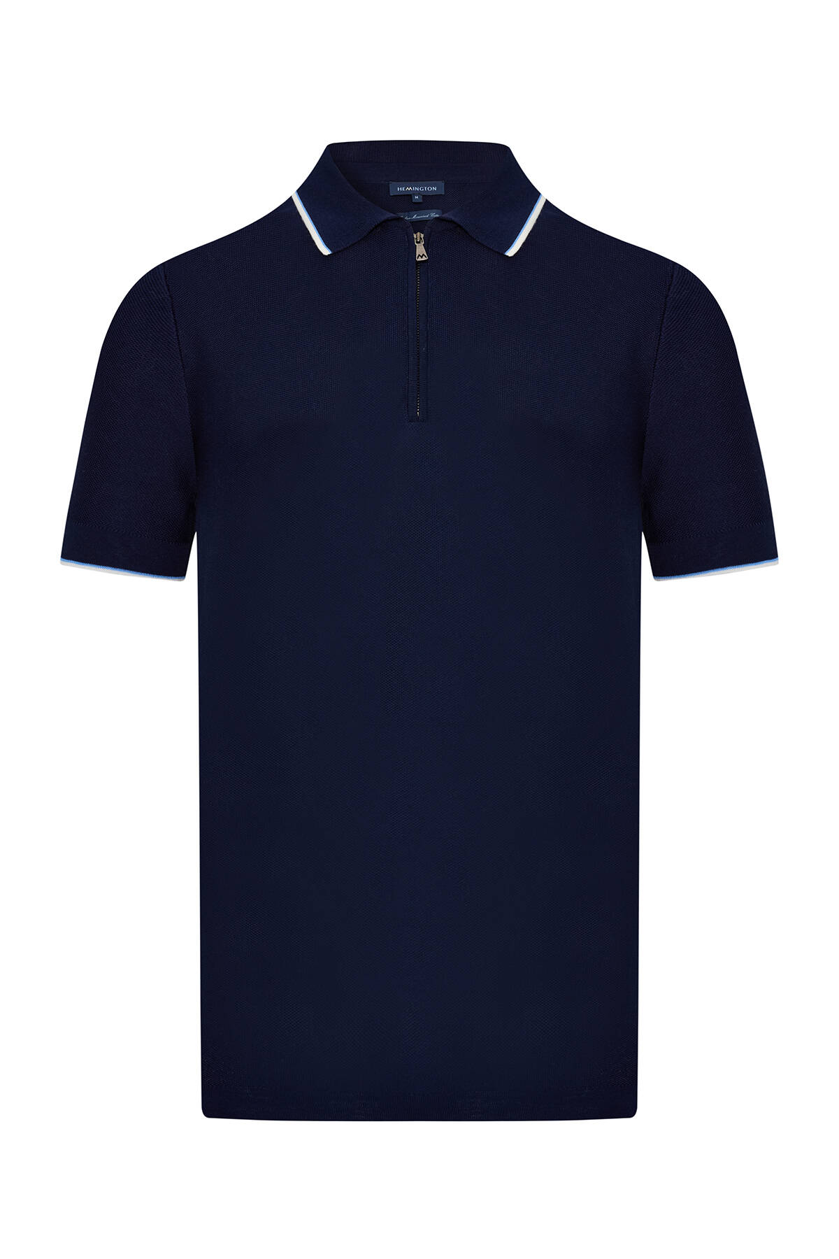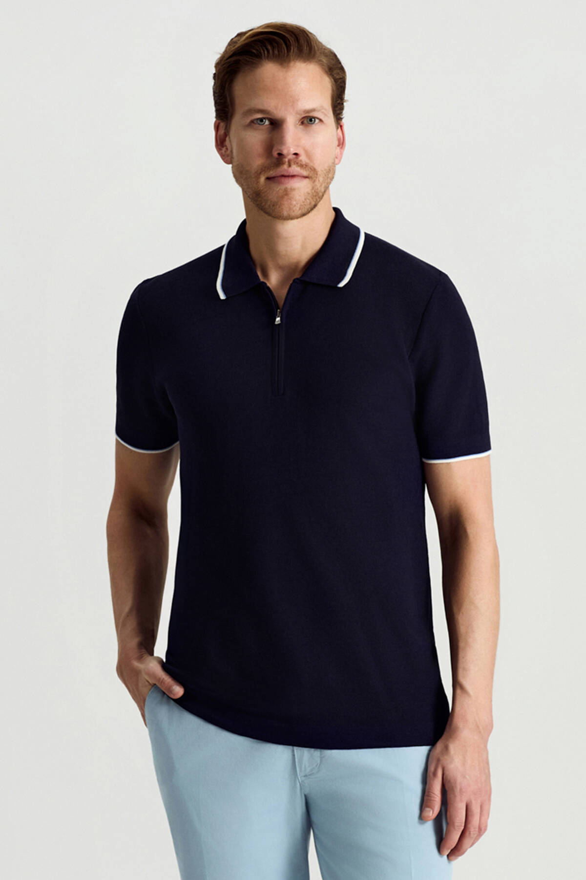 Merserize Pamuk Fermuar Yaka Lacivert Triko Polo