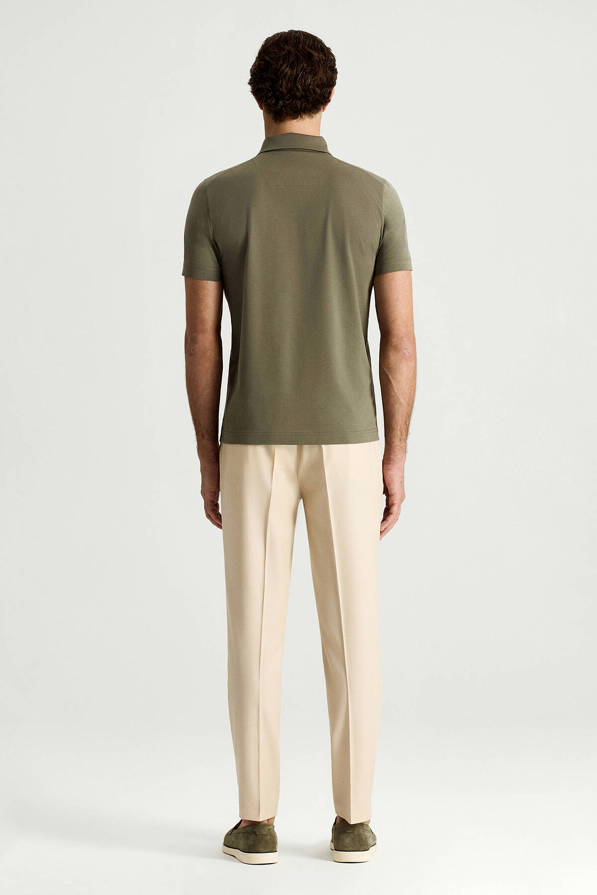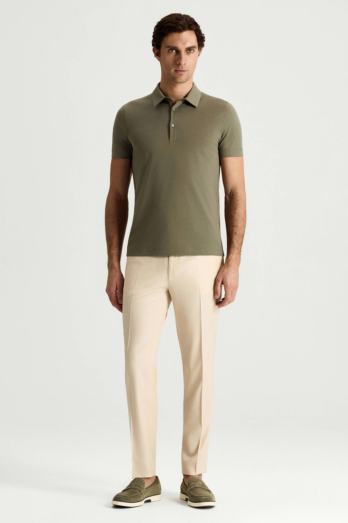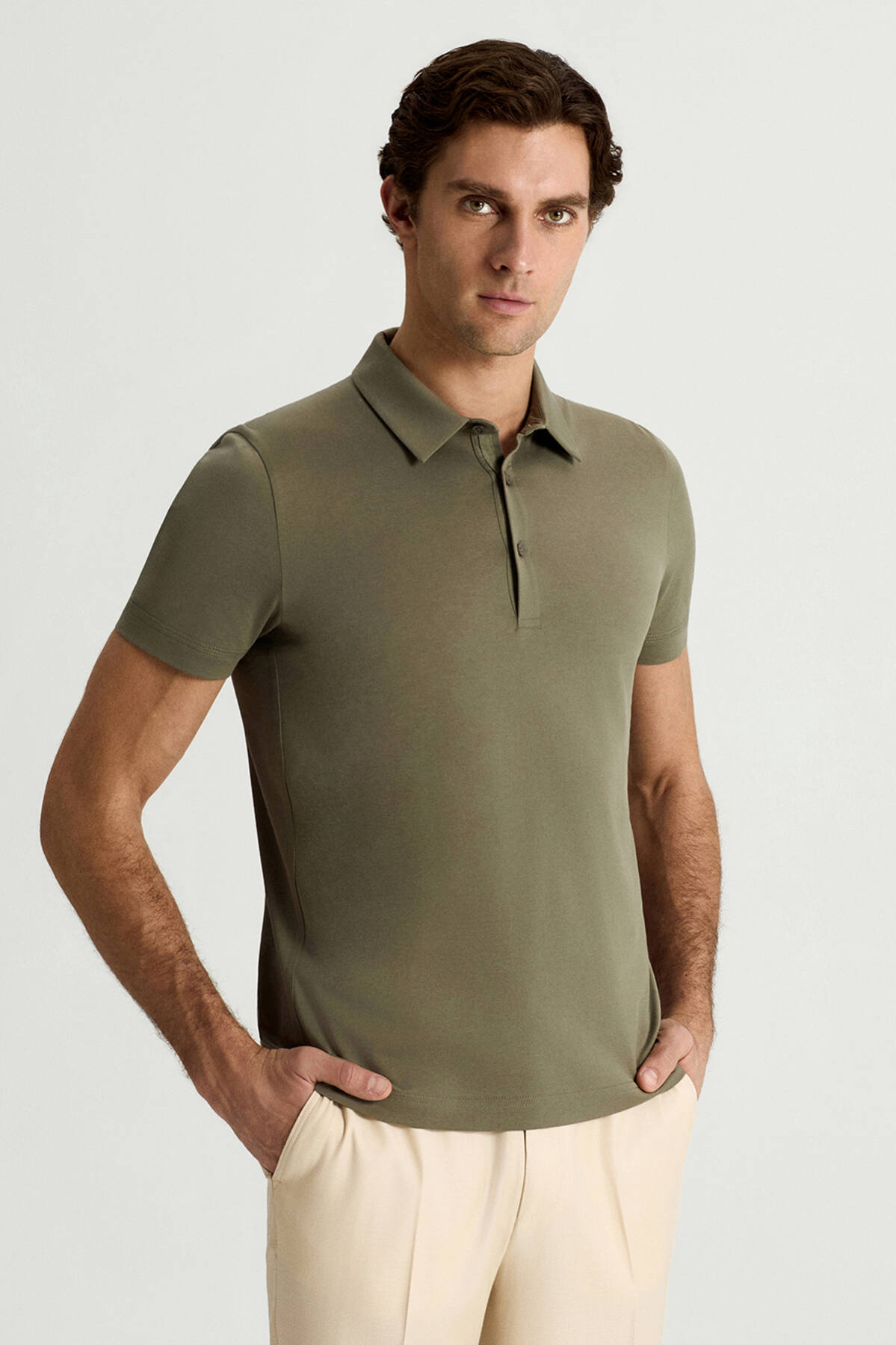 Merserize Pamuk Haki Polo Yaka T-Shirt