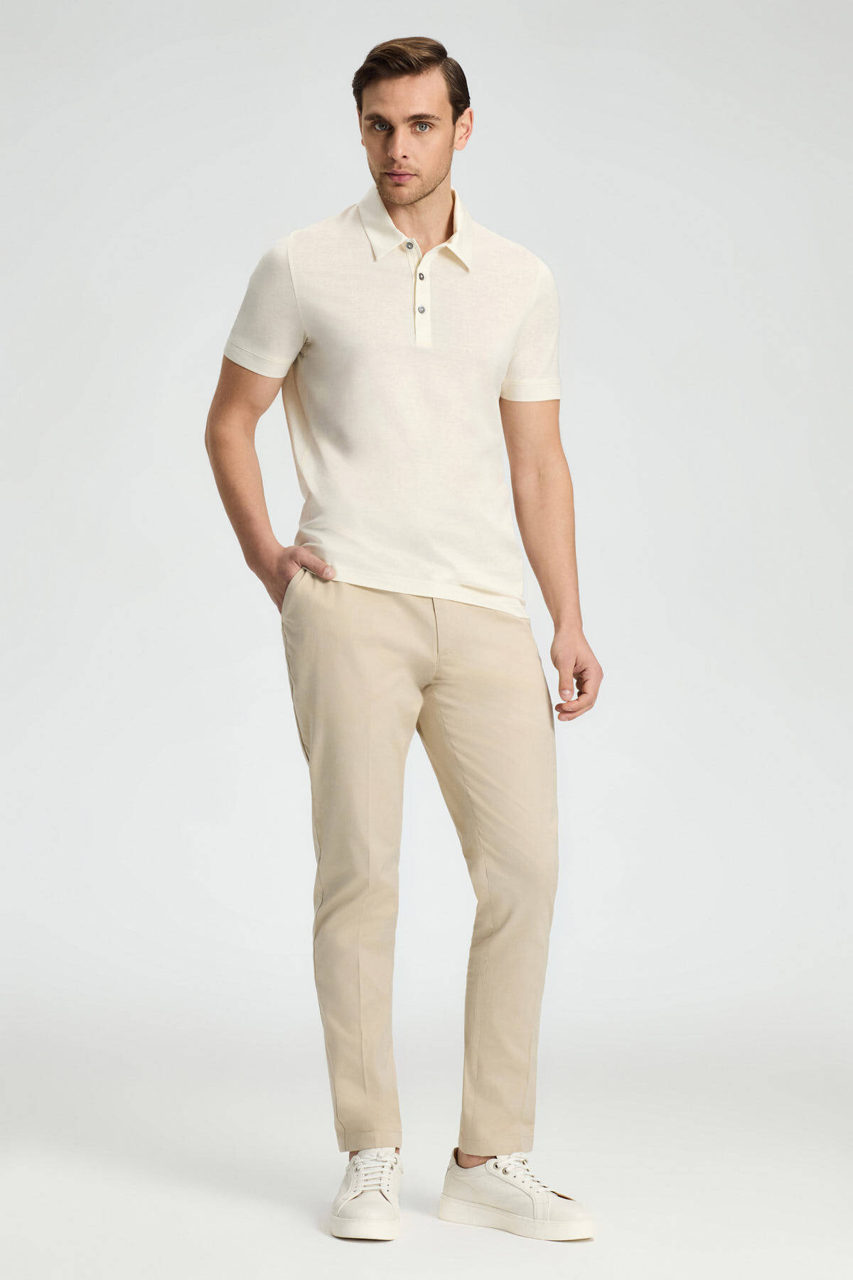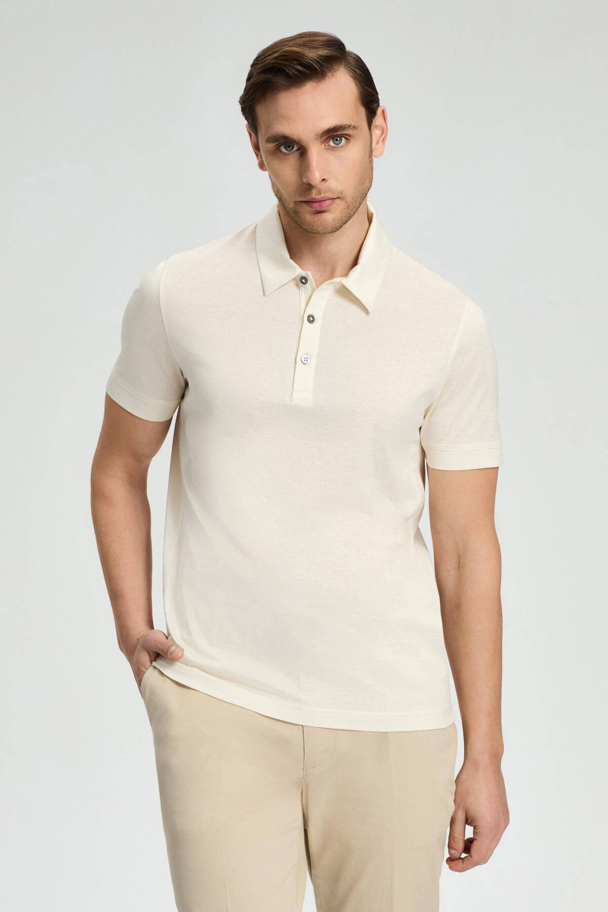 Merserize Pamuk Krem Rengi Polo Yaka T-Shirt