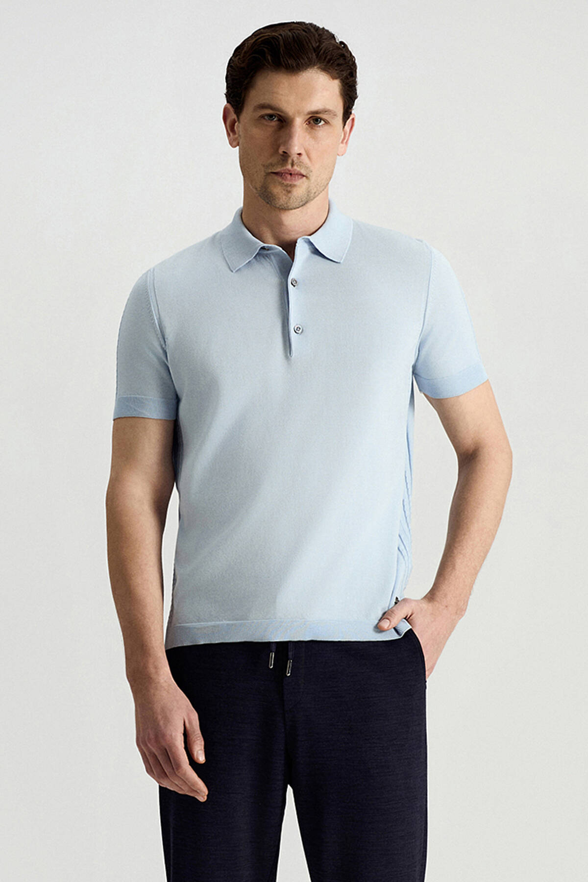 | Polo Yaka, Kolları Örgü Detaylı, Logo Detayı |