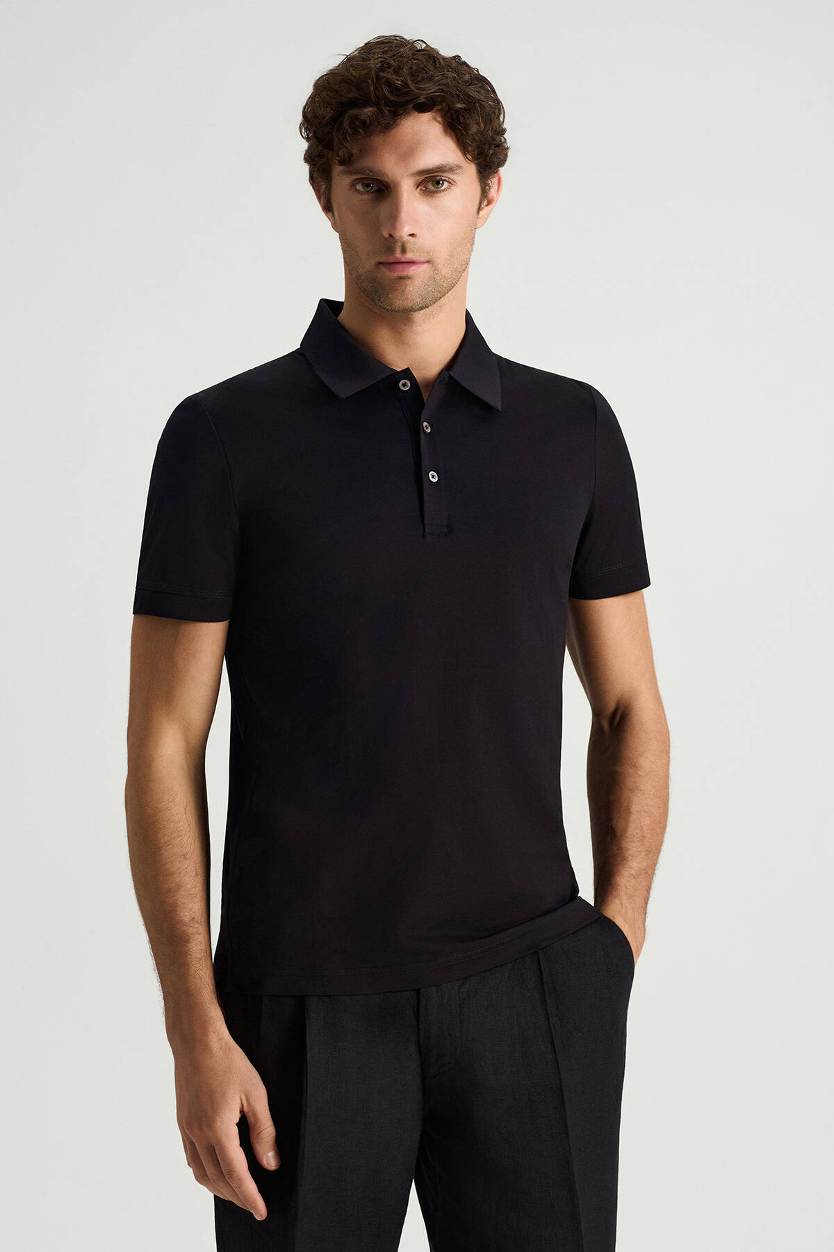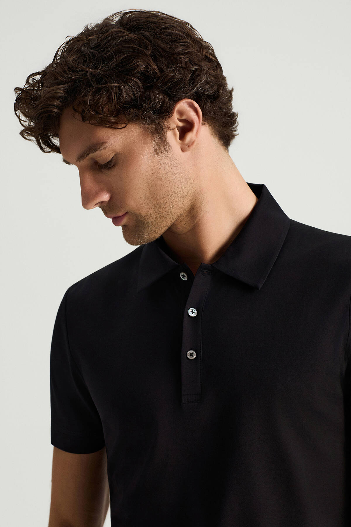 Klasik siyah renkli merserize pamuk polo yaka T-shirt, hem şıklığı hem de konforu bir arada sunar. Günlük ve iş kombinlerinizde rahatlıkla tercih edebilirsiniz.