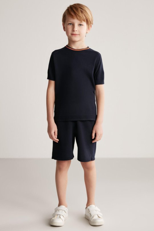 Nakış Logolu Yaka Detaylı Lacivert Triko Çocuk T-Shirt