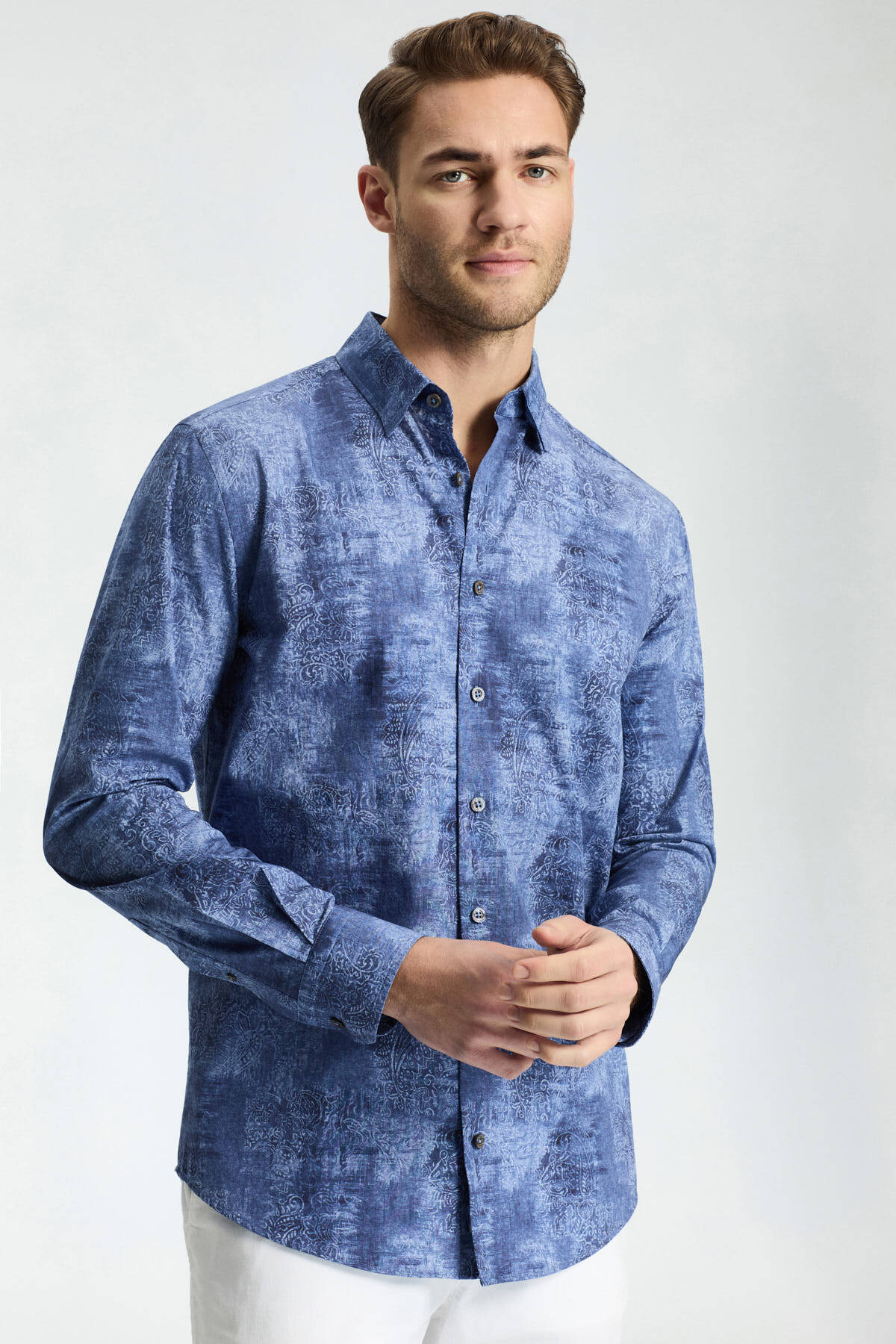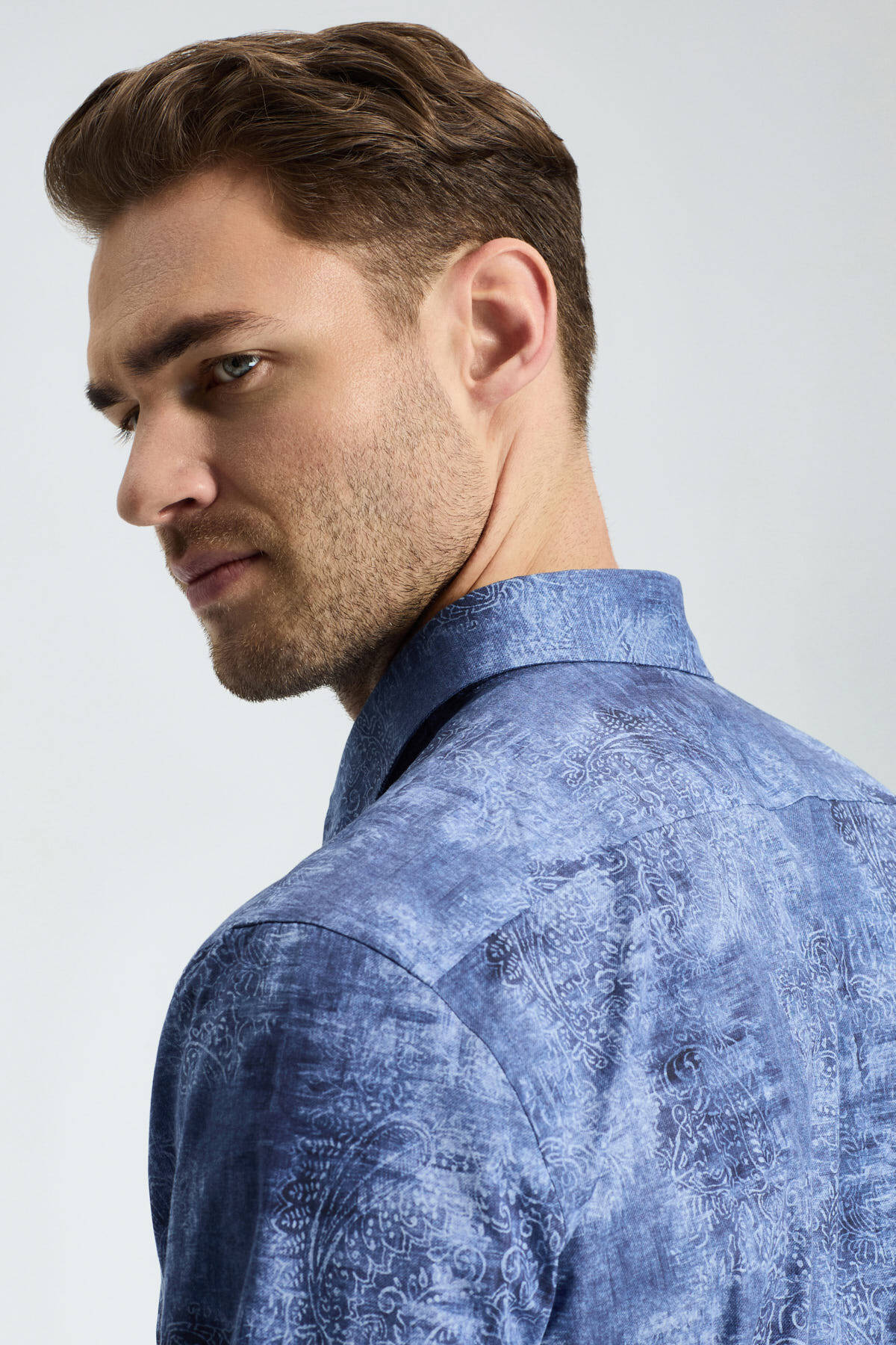 Paisley Desen Koyu Mavi Pamuk Gömlek