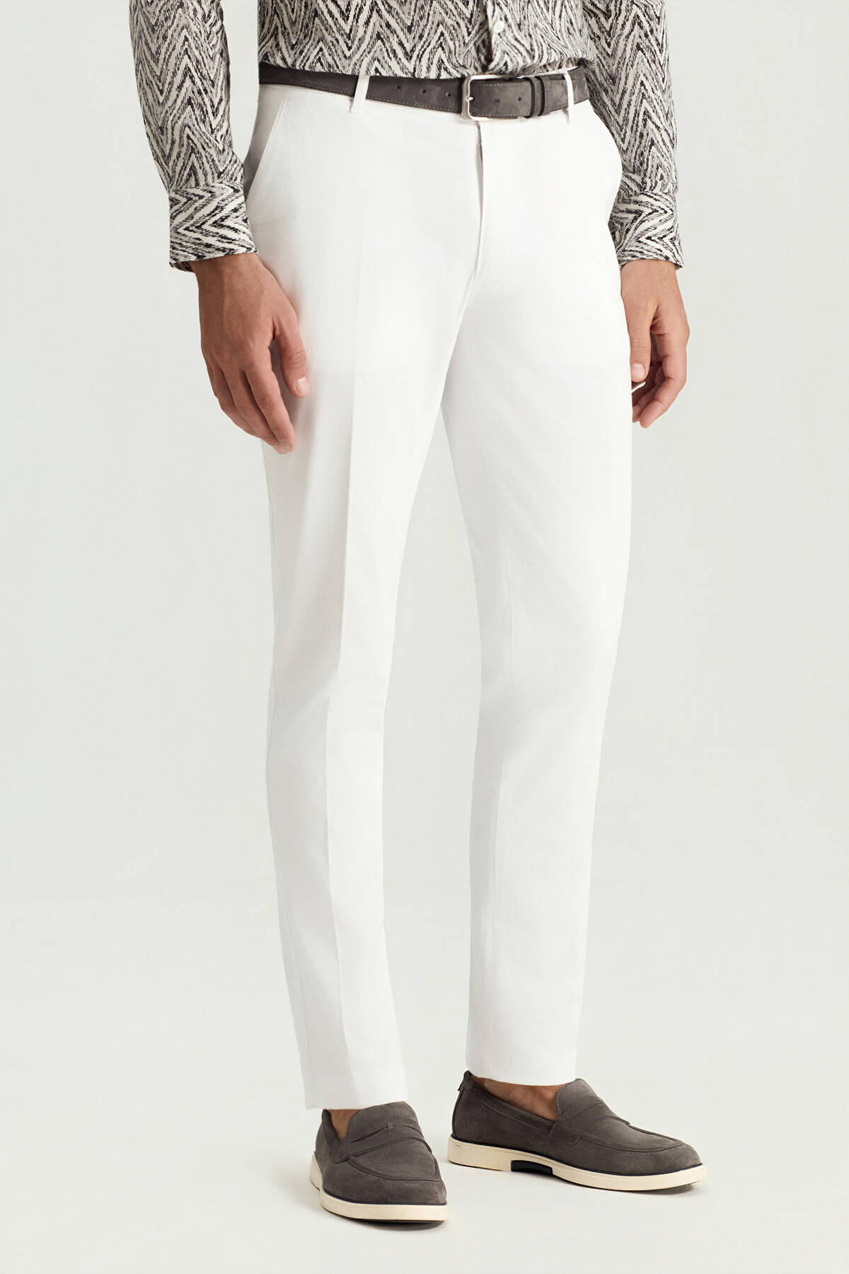 Pamuk Karışım Beyaz Yazlık Chino Pantolon