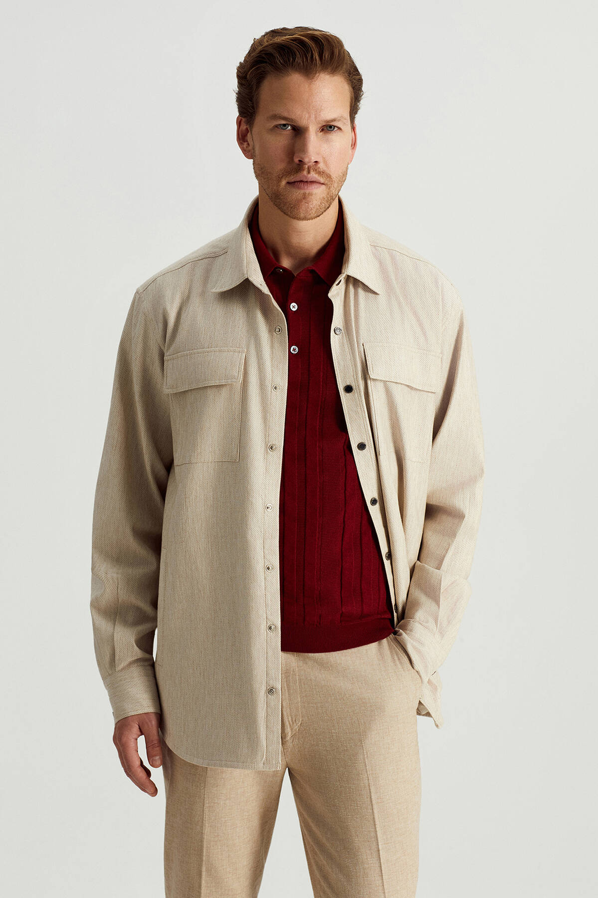 Pamuk Tencel Kumaş Metal Düğmeli Açık Bej Ceket Gömlek
