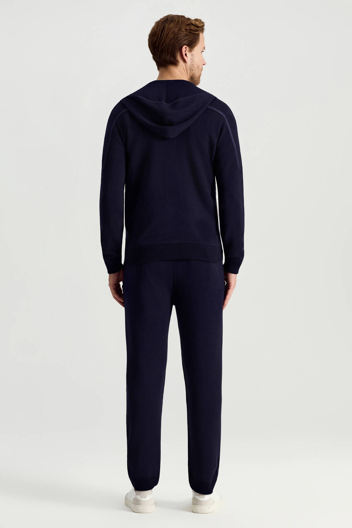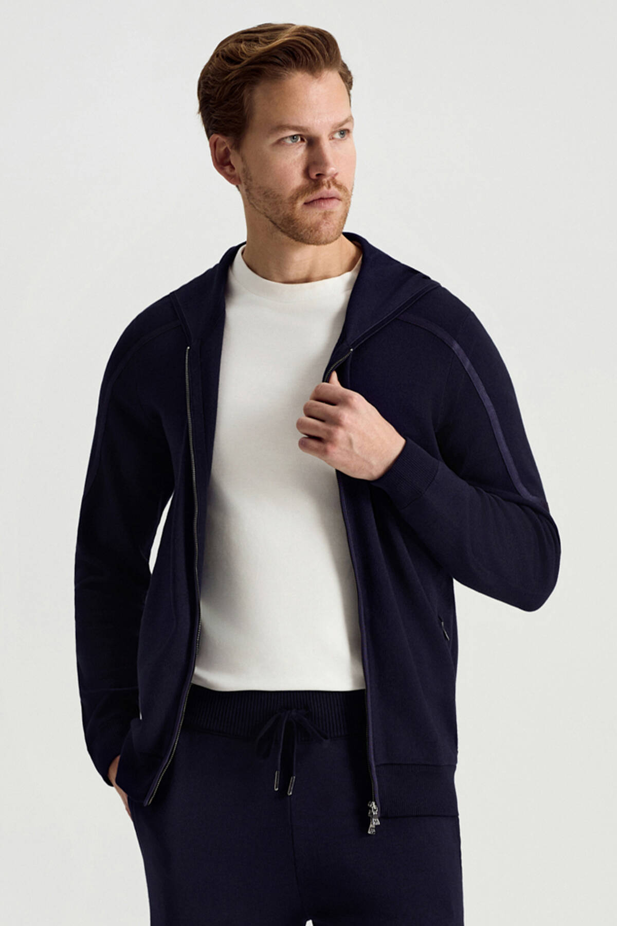 Pike Örgü Pamuk Karışım Kapüşonlu Lacivert Triko Hırka