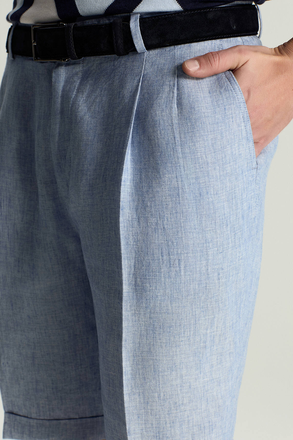 Birinci sınıf saf keten kumaştan üretilen pileli şort, uzun yıllar formunu ve rengini ilk günkü gibi korur. Rahat kalıbı ve cepleri ile konforlu bir giyim deneyimi sunan şort modeli, keten gömlek ve polo yaka t-shirtlerinize kolay uyum sağlar.