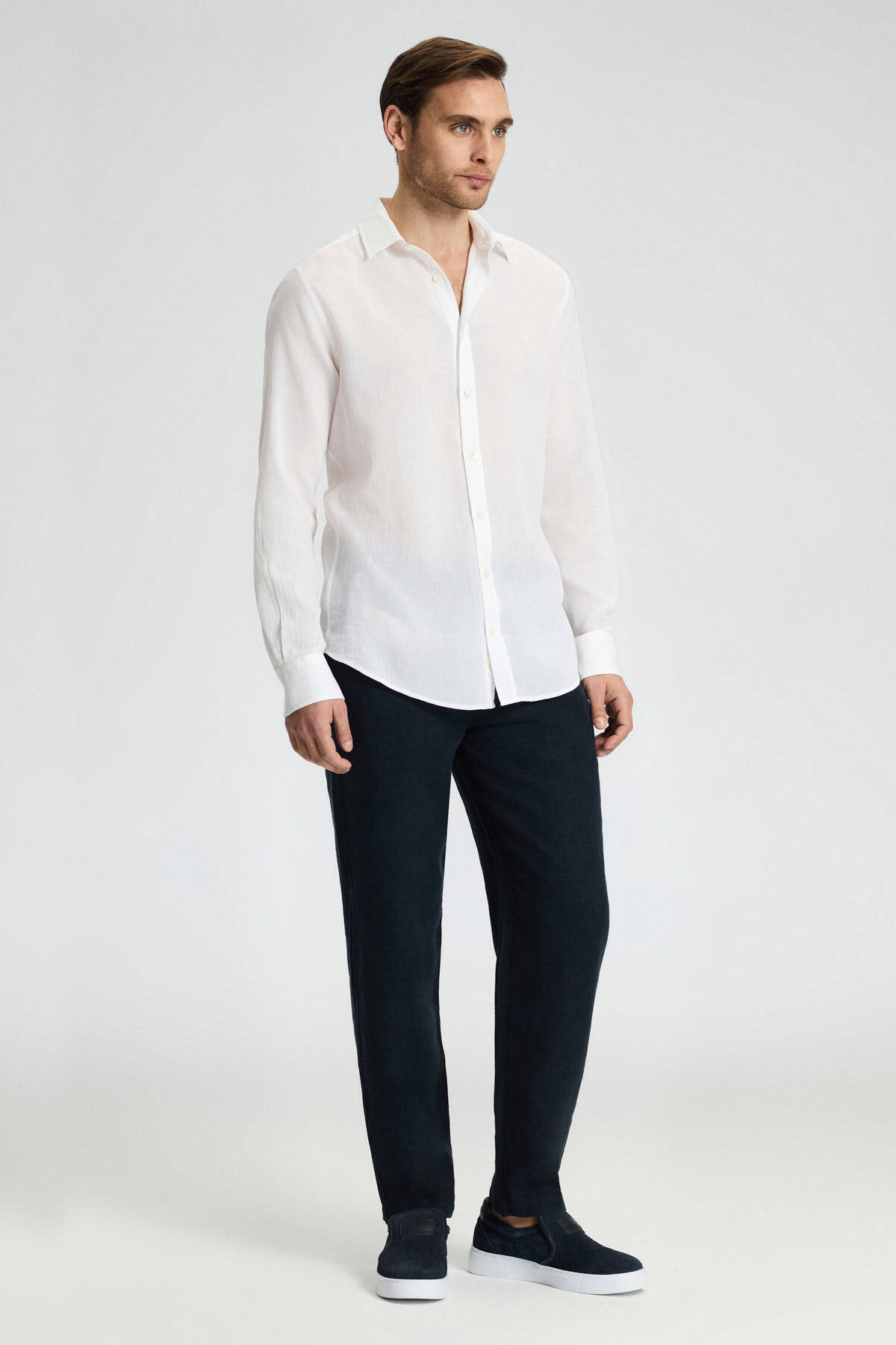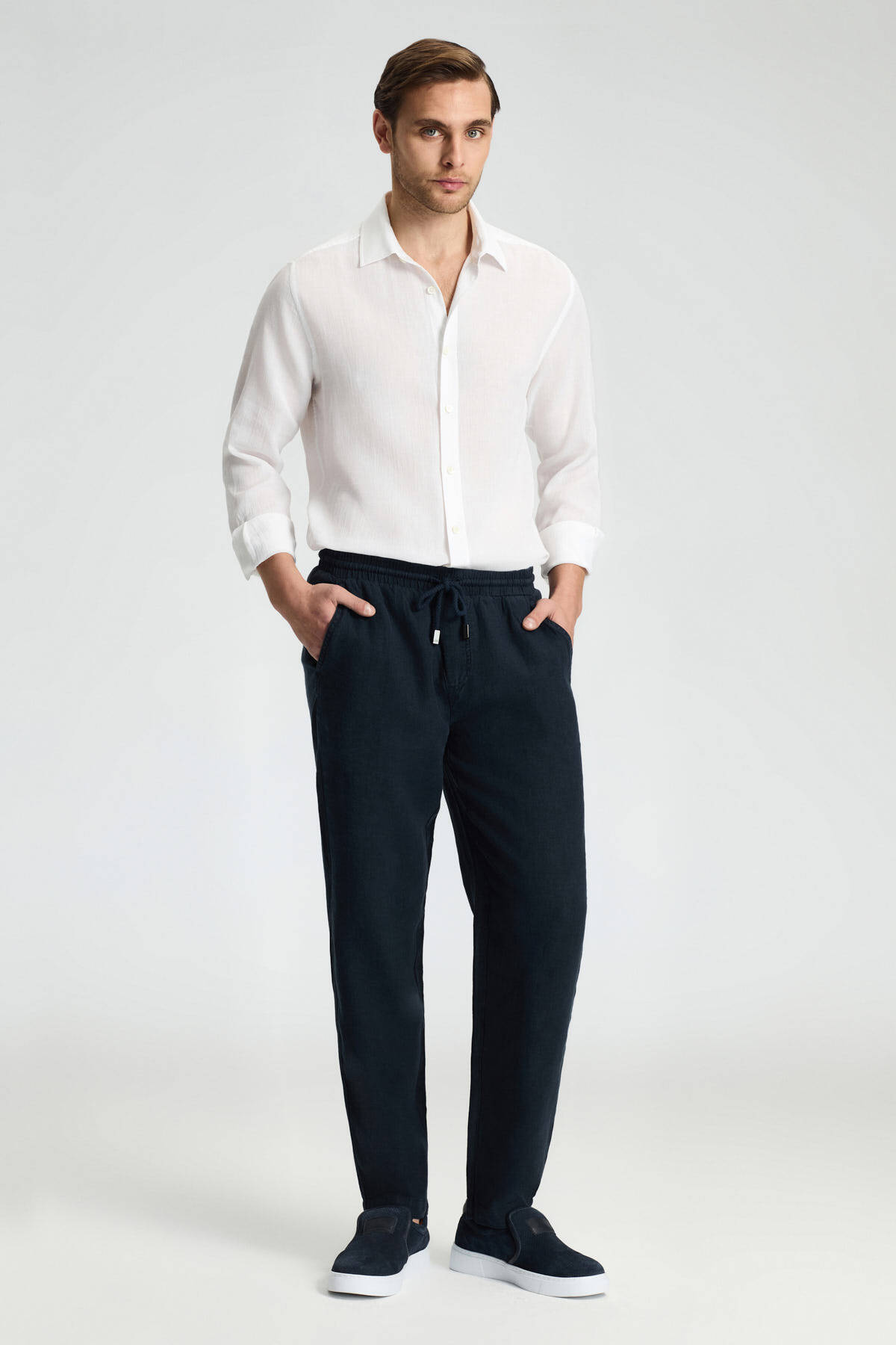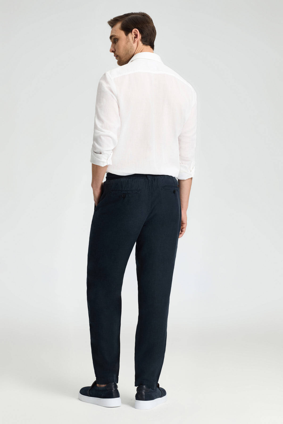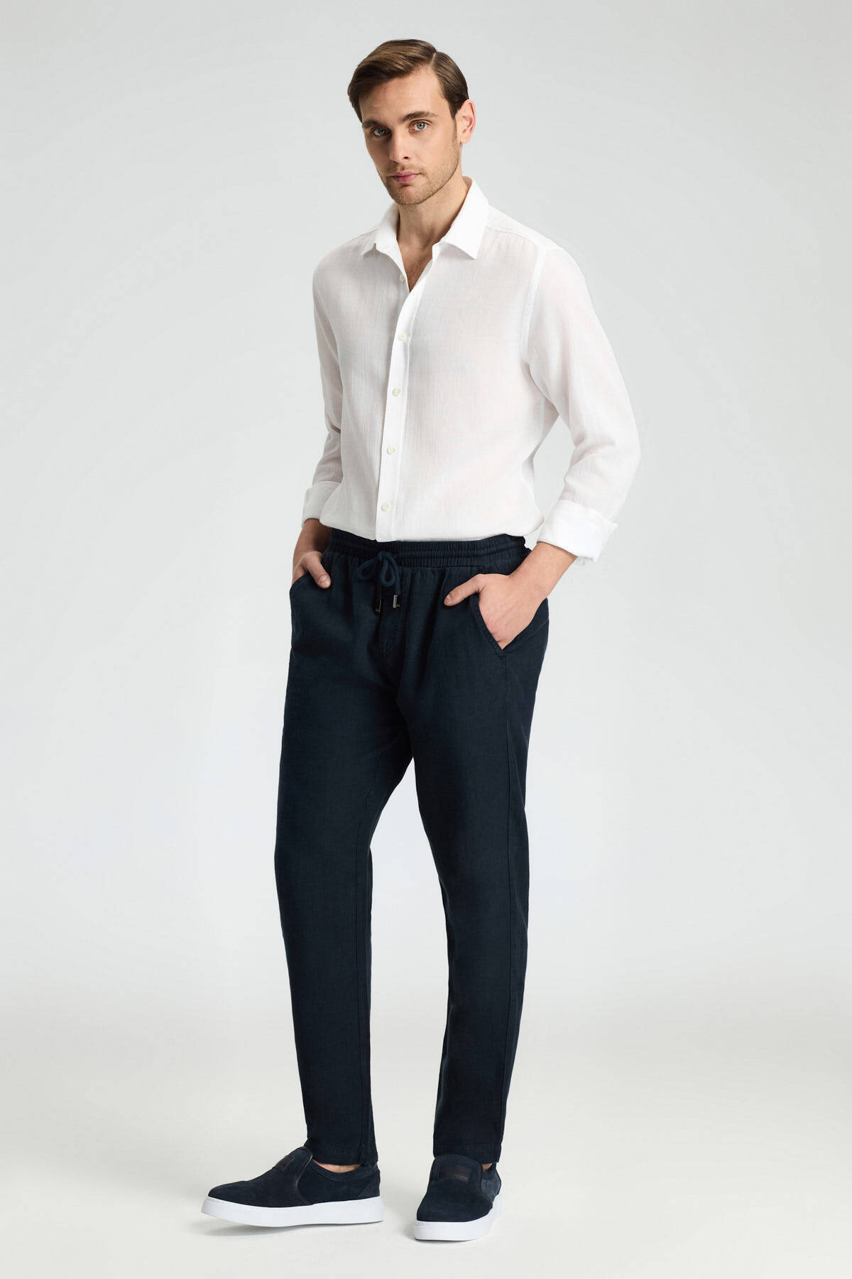 Saf keten lacivert pantolon, nefes alan yapısı sayesinde sıcak yaz günlerinde dolabınızın kurtarıcı parçaları arasında olmaya adaydır. Erkek saf keten pantolon modeli, eşsiz kumaş yapısı, belden kolay ayarlanabilir bağcık detayı ve regular fit kalıbı sayesinde hareket kabiliyetinizi engellemez, şıklık ve konforu bir arada sunar. Sportif kombinleriniz için ideal bir parça olan %100 saf keten pantolon, hafta içi ve hafta sonu stiliniz için tamamlayıcı bir parçadır.