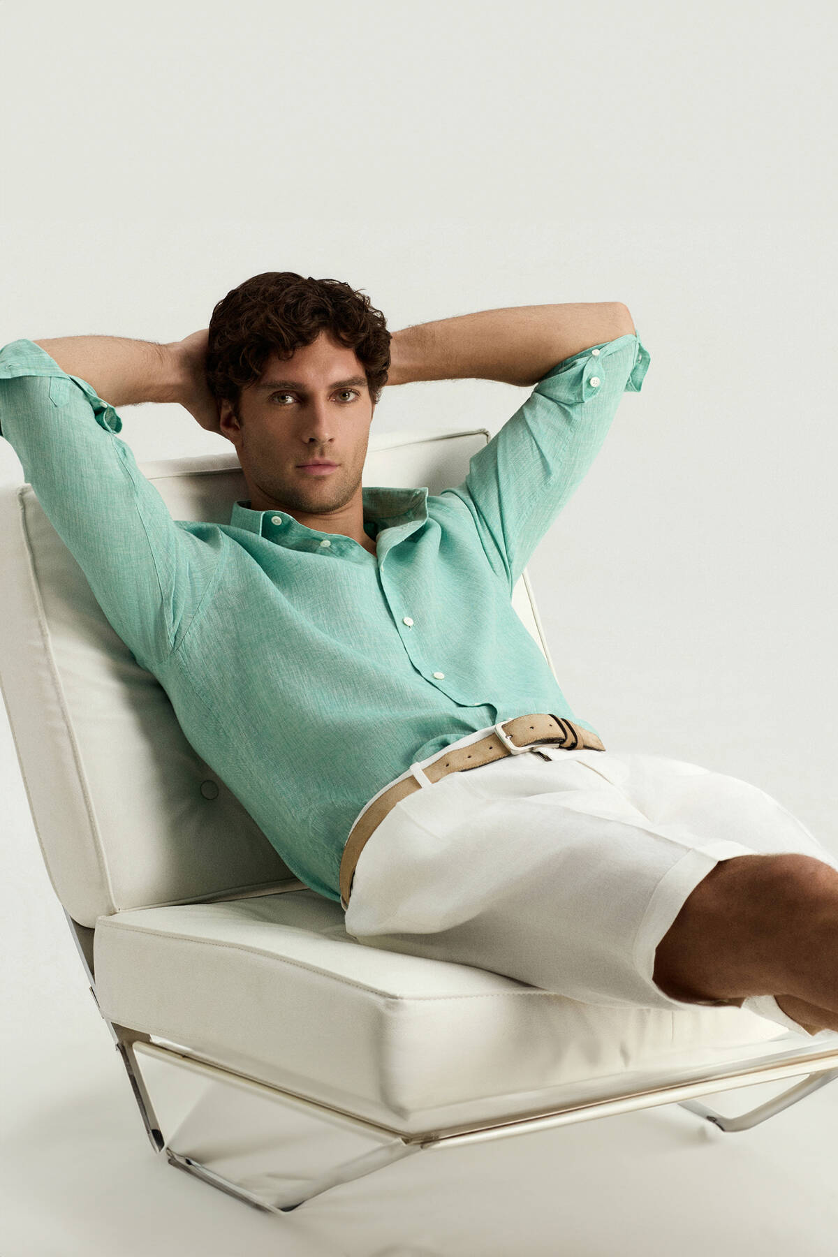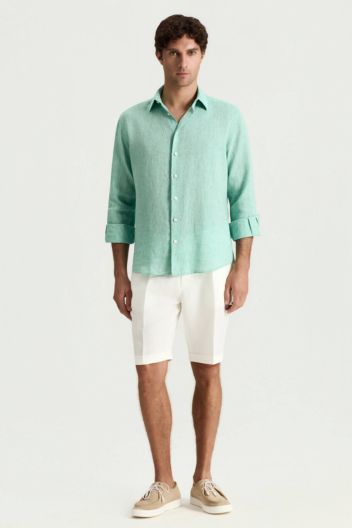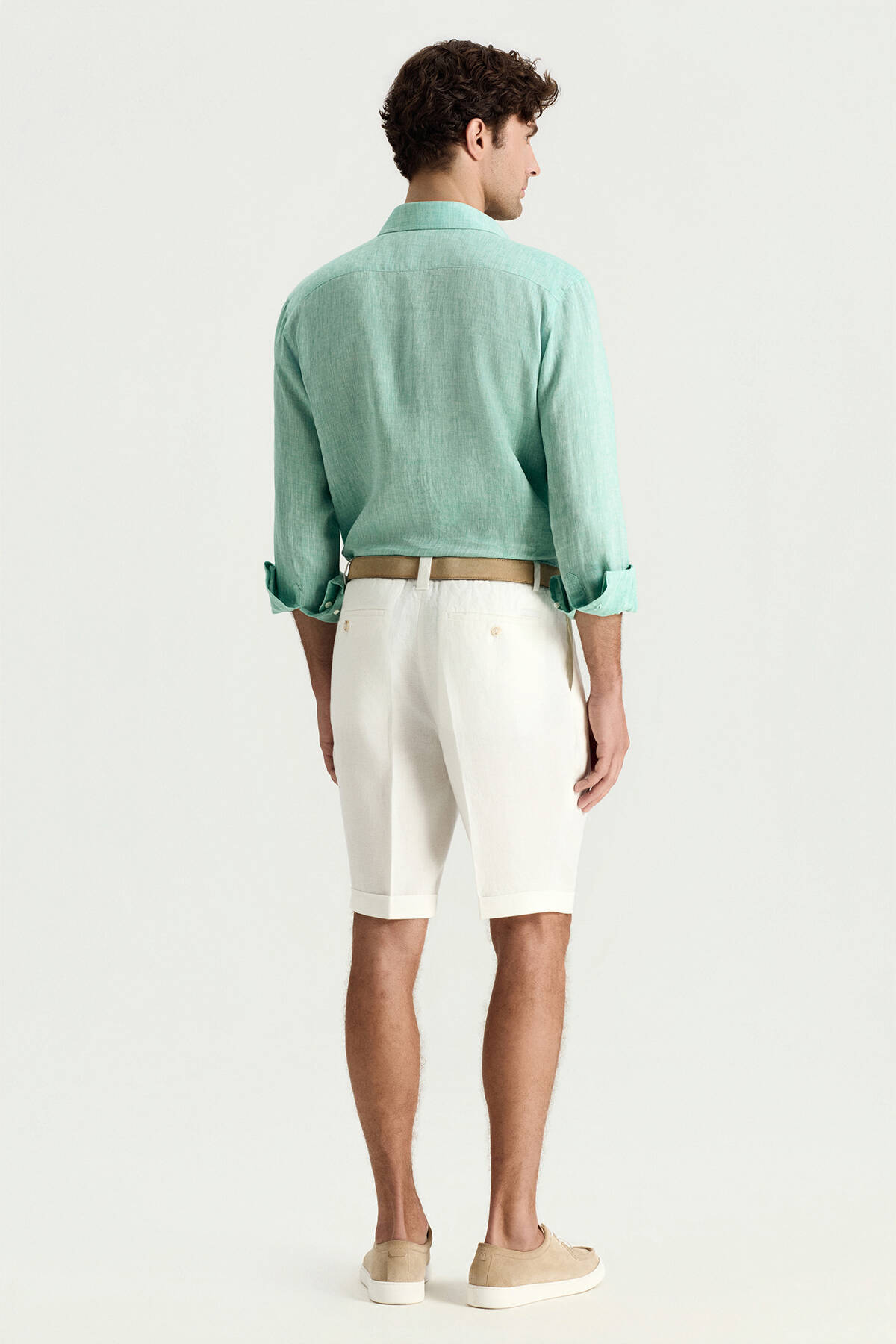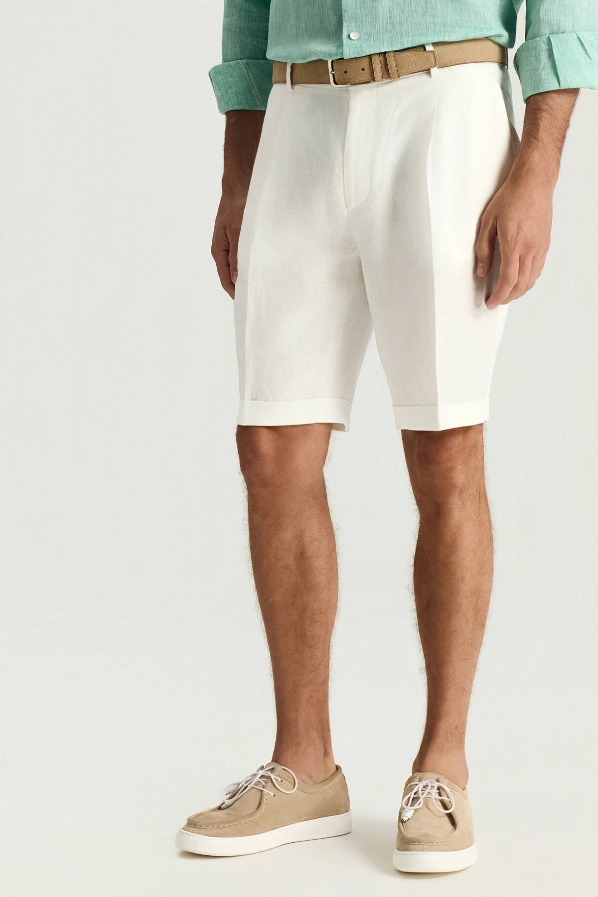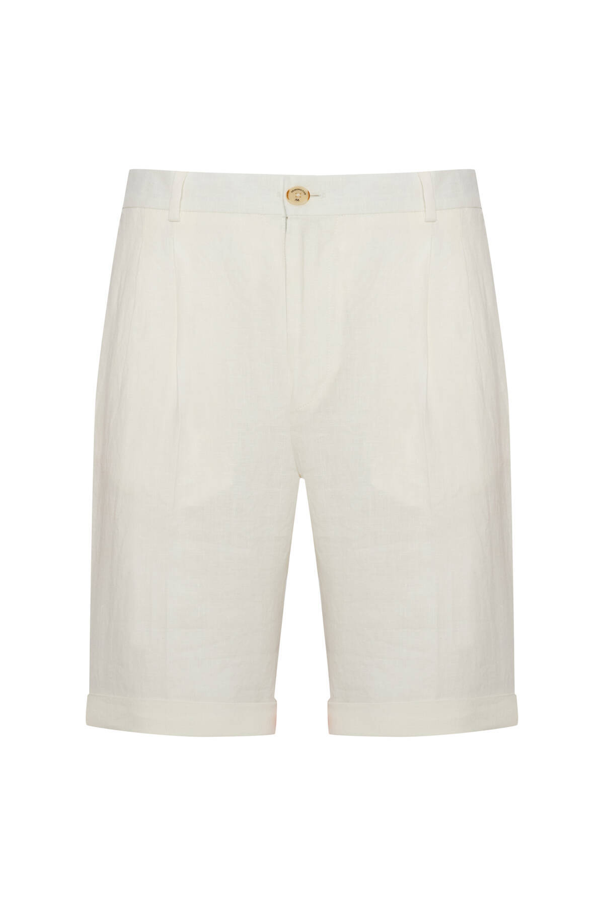 Birinci sınıf saf keten kumaştan üretilen pileli şort, uzun yıllar formunu ve rengini ilk günkü gibi korur. Rahat kalıbı ve cepleri ile konforlu bir giyim deneyimi sunan şort modeli, keten gömlek ve polo yaka t-shirtlerinize kolay uyum sağlar.