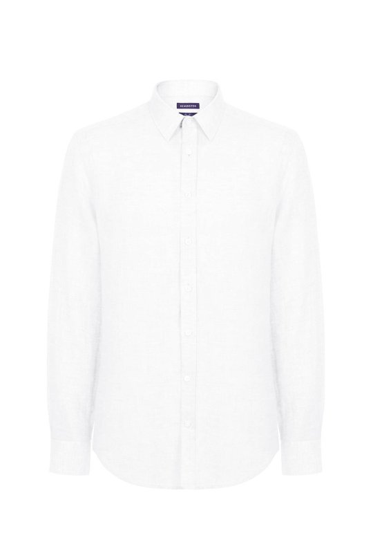 Beyaz Saf Keten Spor Gömlek