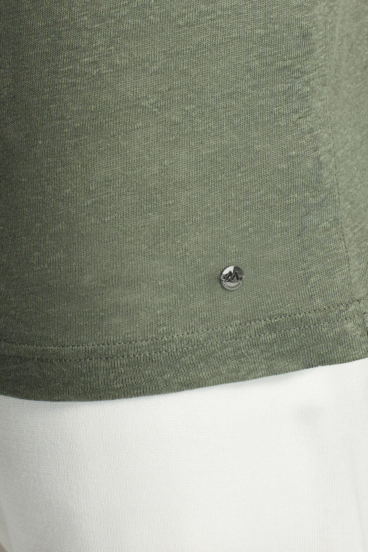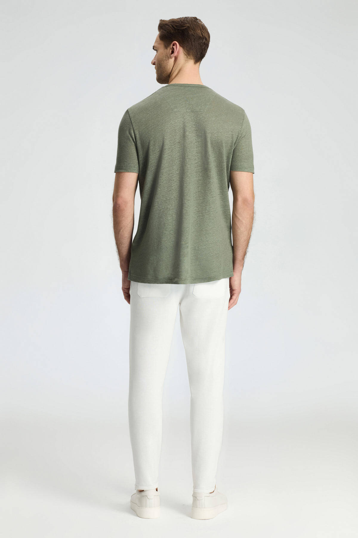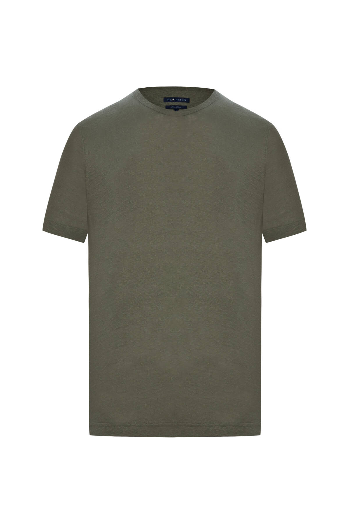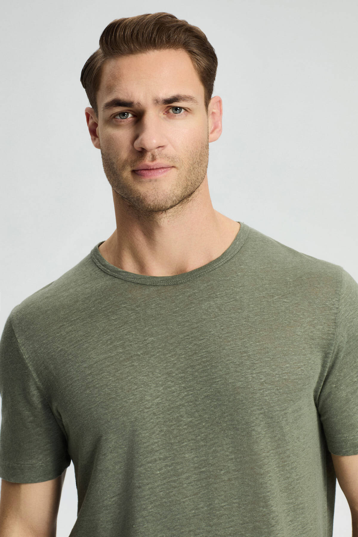 Saf Keten Haki Bisiklet Yaka T-Shirt