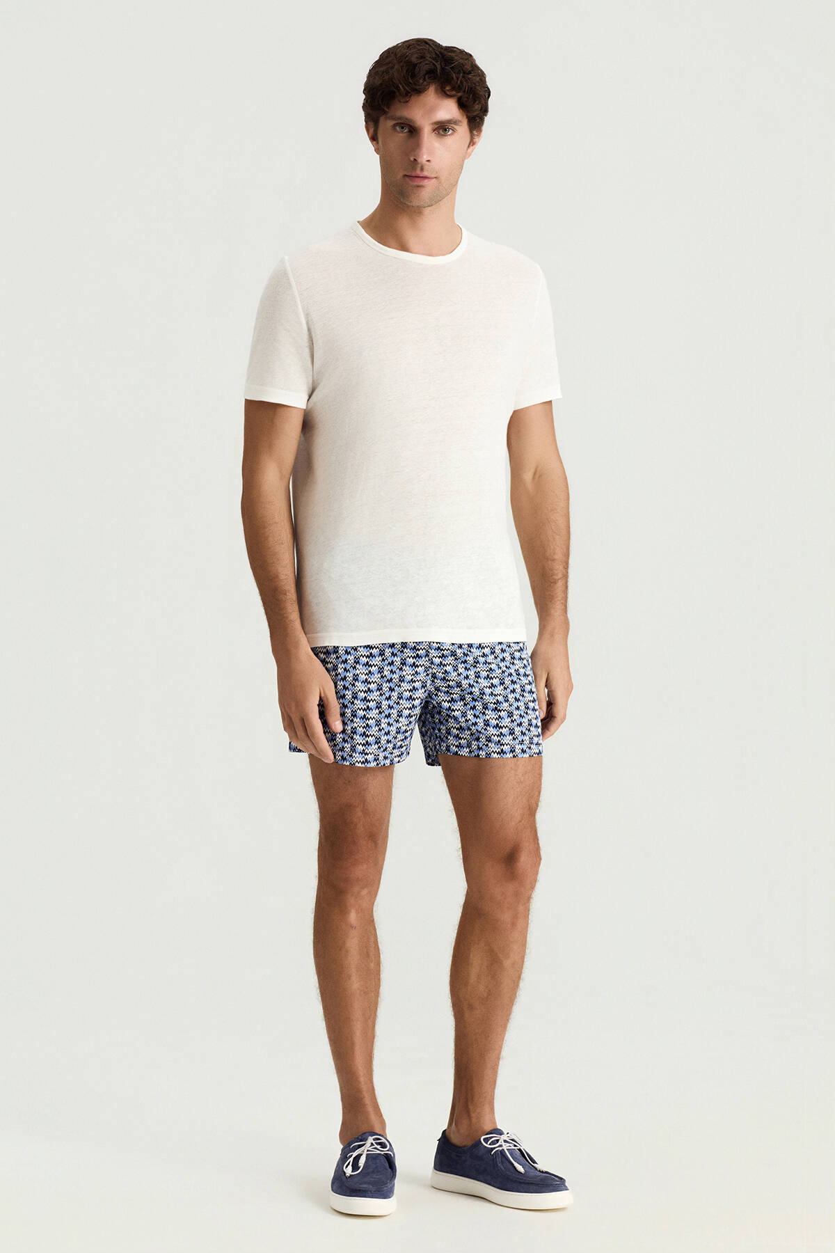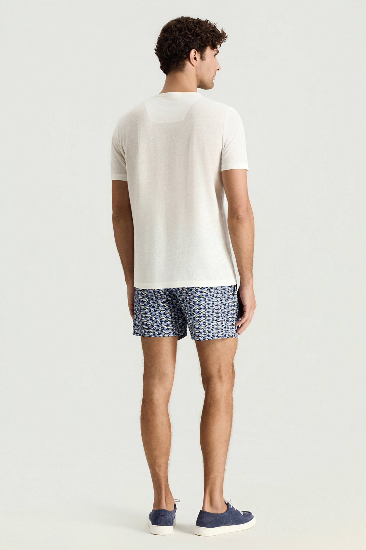 Soğuk tuşesi ile yaz günlerinde konforlu ve şık bir giyim deneyimi sunan desenli saf keten t-shirt, dört mevsim giyim deneyimi sunar. Saf keten t-shirt modeli, yuvarlak yakası, geniş renk yelpazesi ve metal logo ayrıntısıyla dolabınızın ayrıcalıklı bir parçası olacaktır.