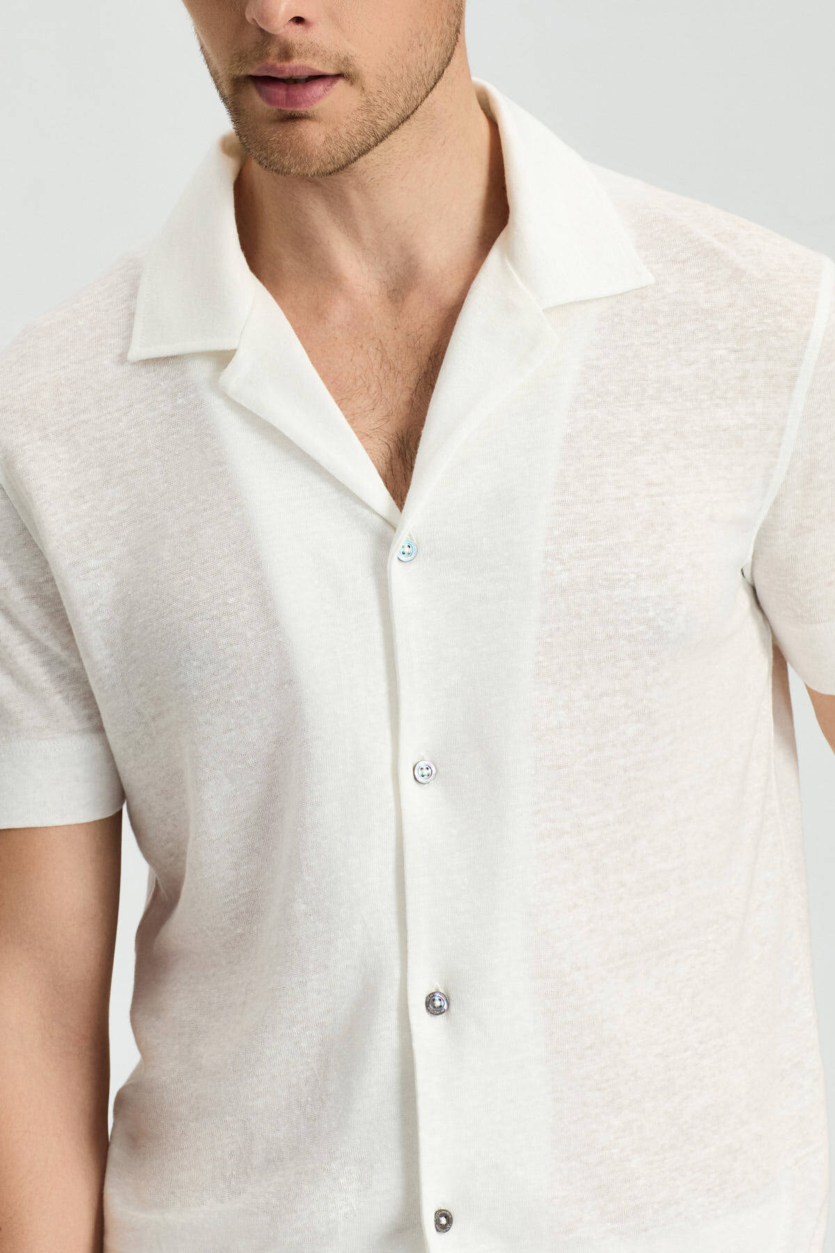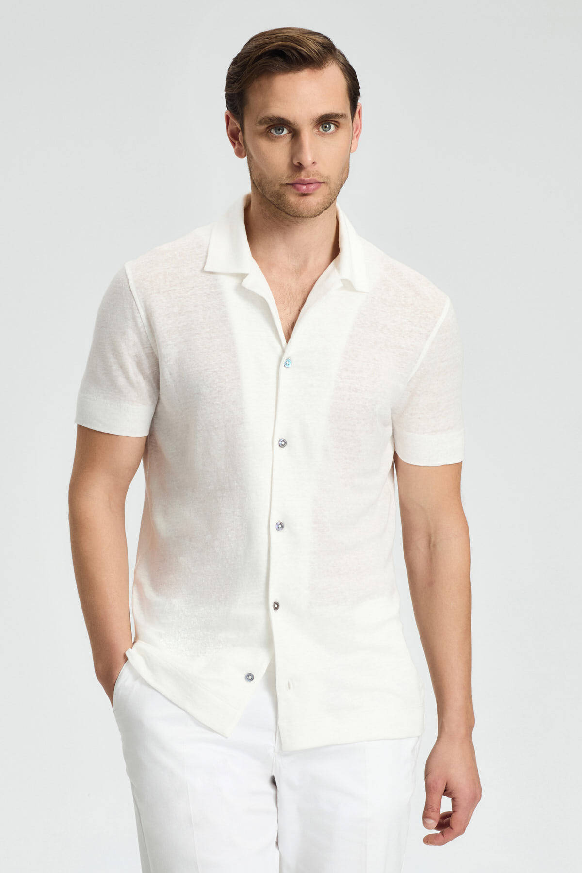 Saf Keten Kısa Kollu Beyaz Gömlek