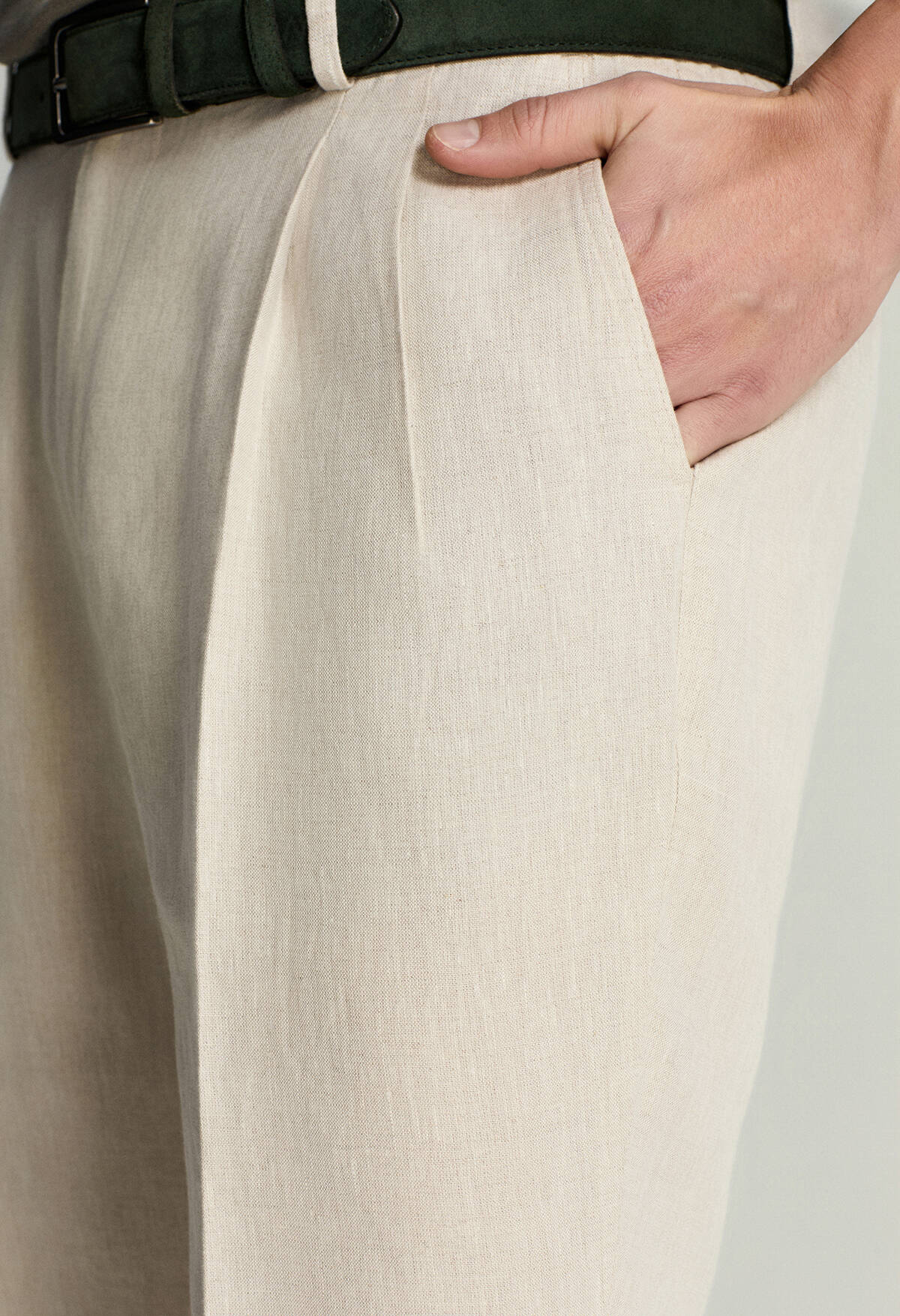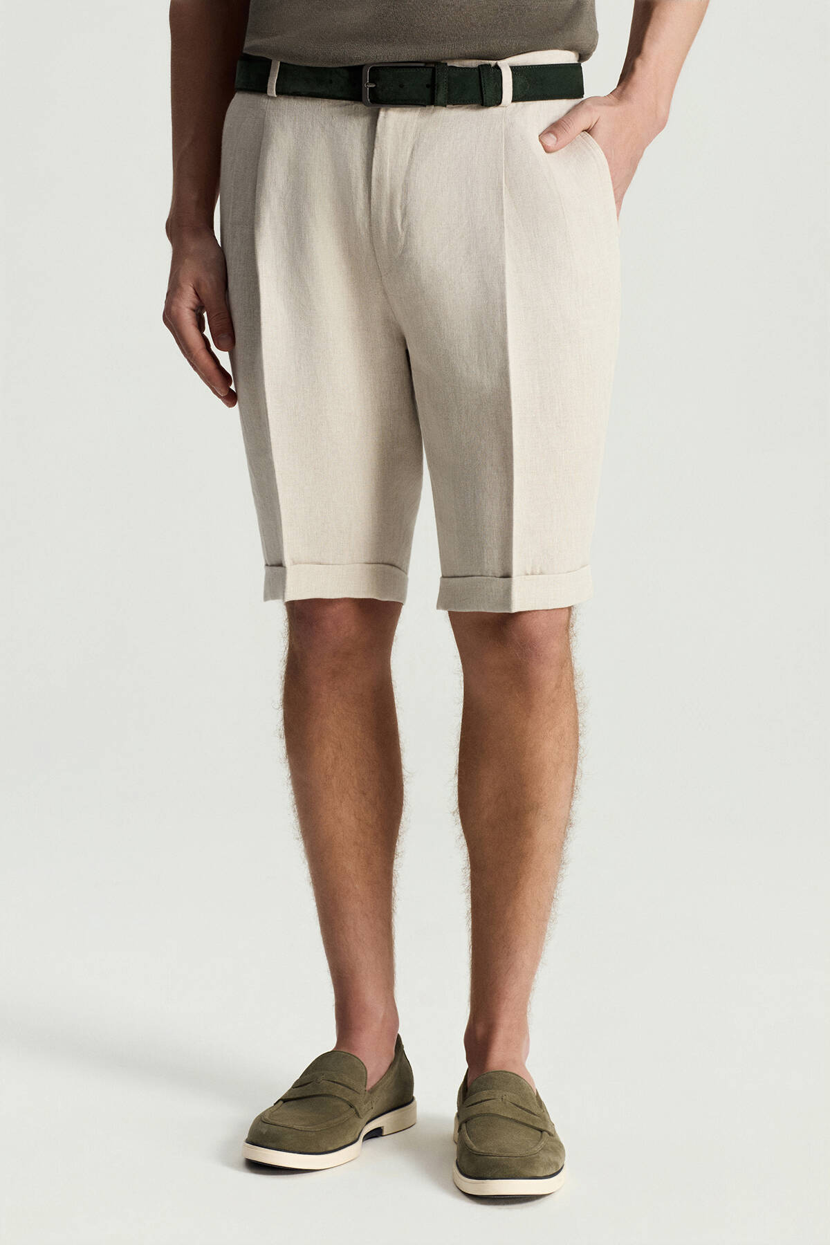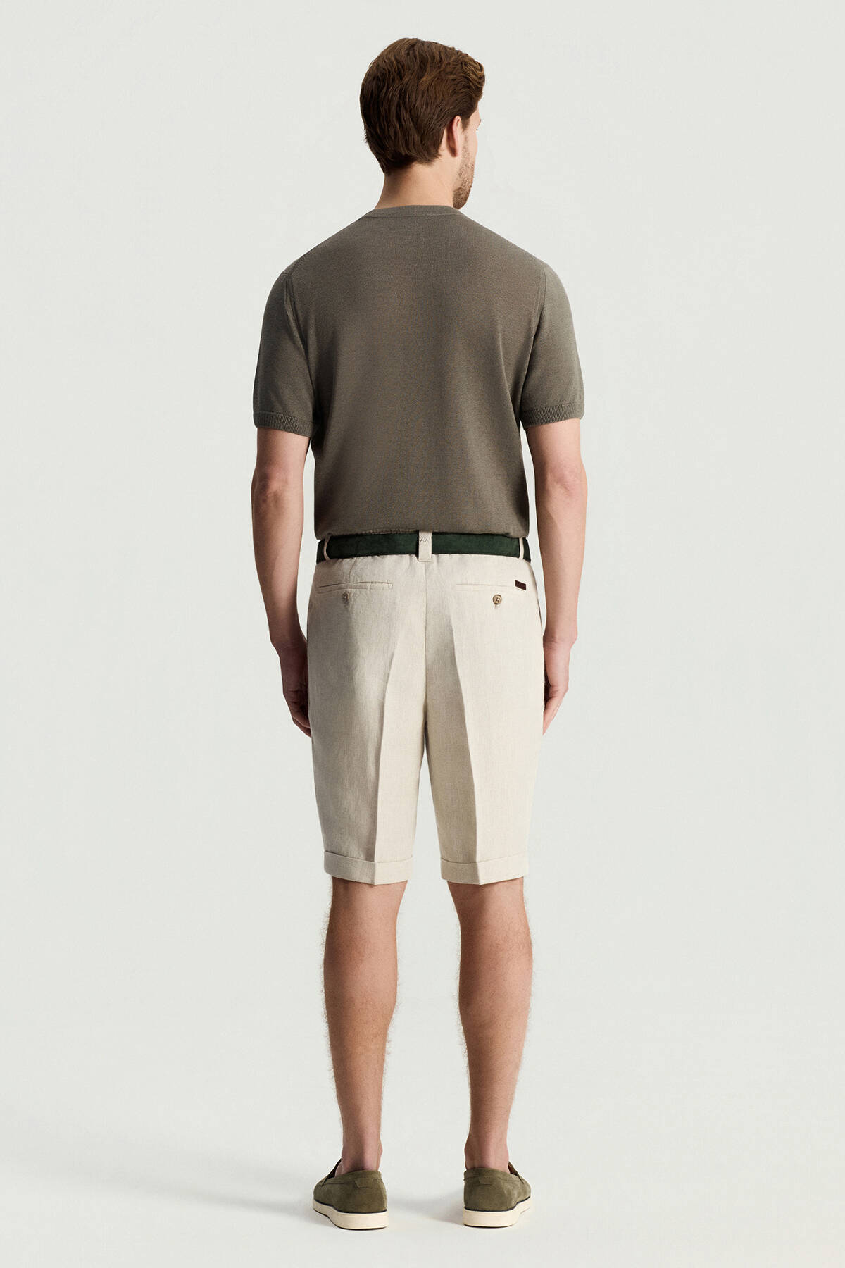 Birinci sınıf saf keten kumaştan üretilen pileli şort, uzun yıllar formunu ve rengini ilk günkü gibi korur. Rahat kalıbı ve cepleri ile konforlu bir giyim deneyimi sunan şort modeli, keten gömlek ve polo yaka t-shirtlerinize kolay uyum sağlar.