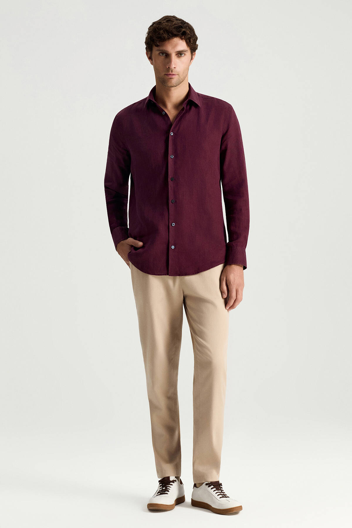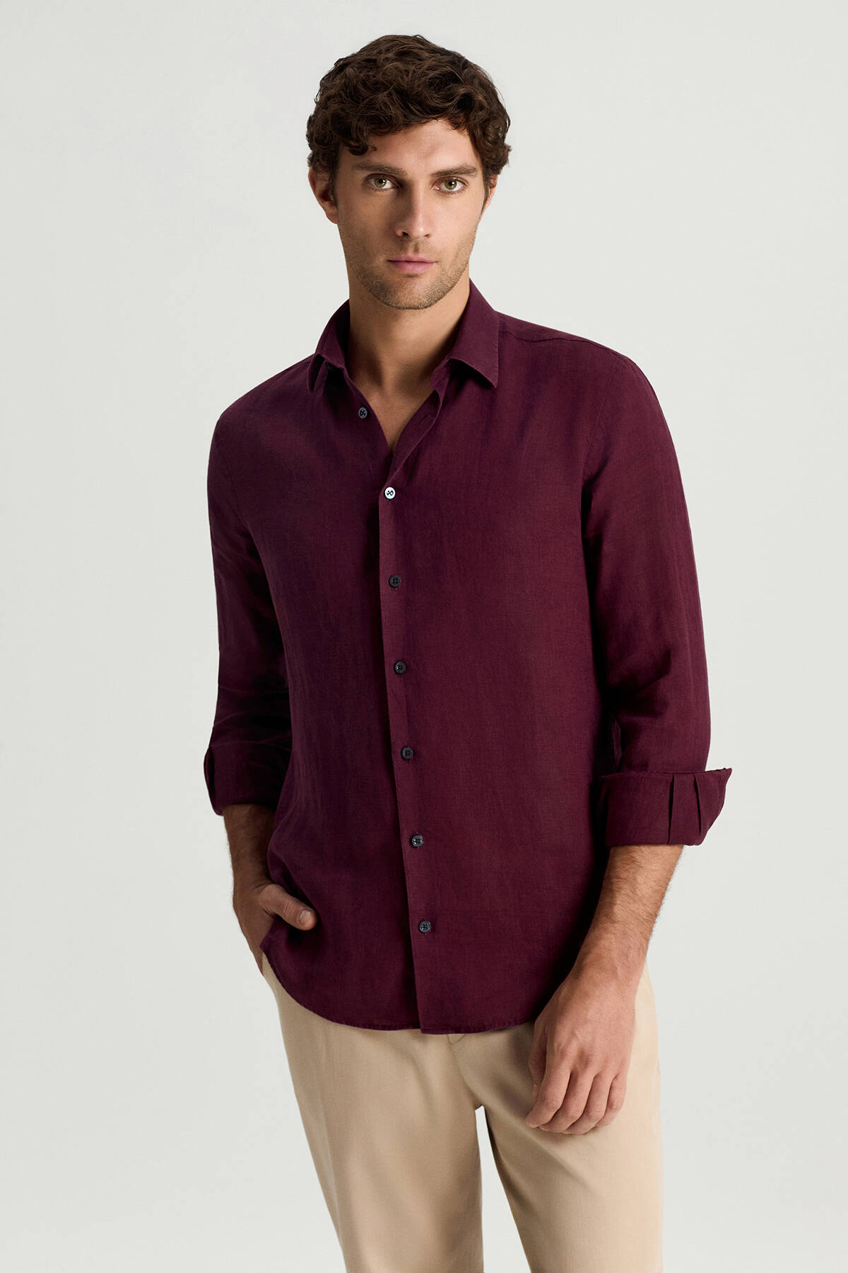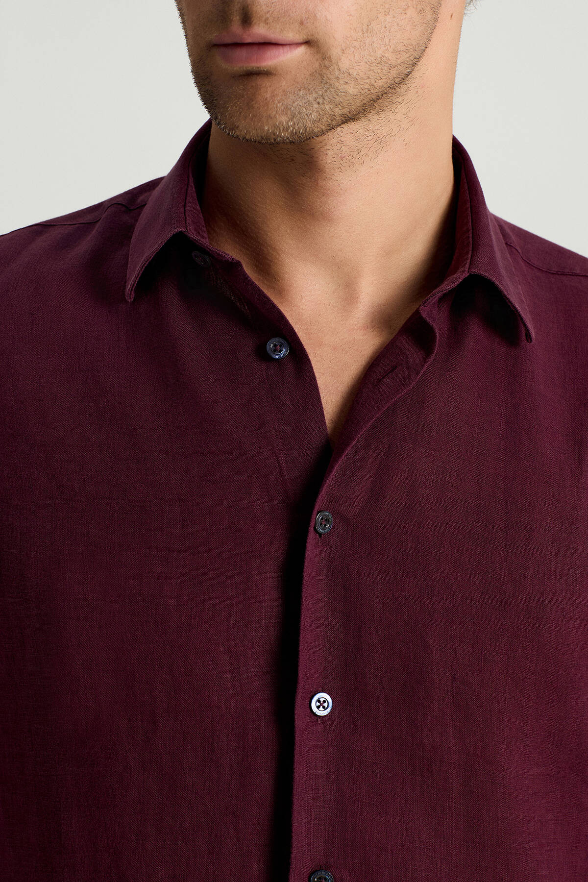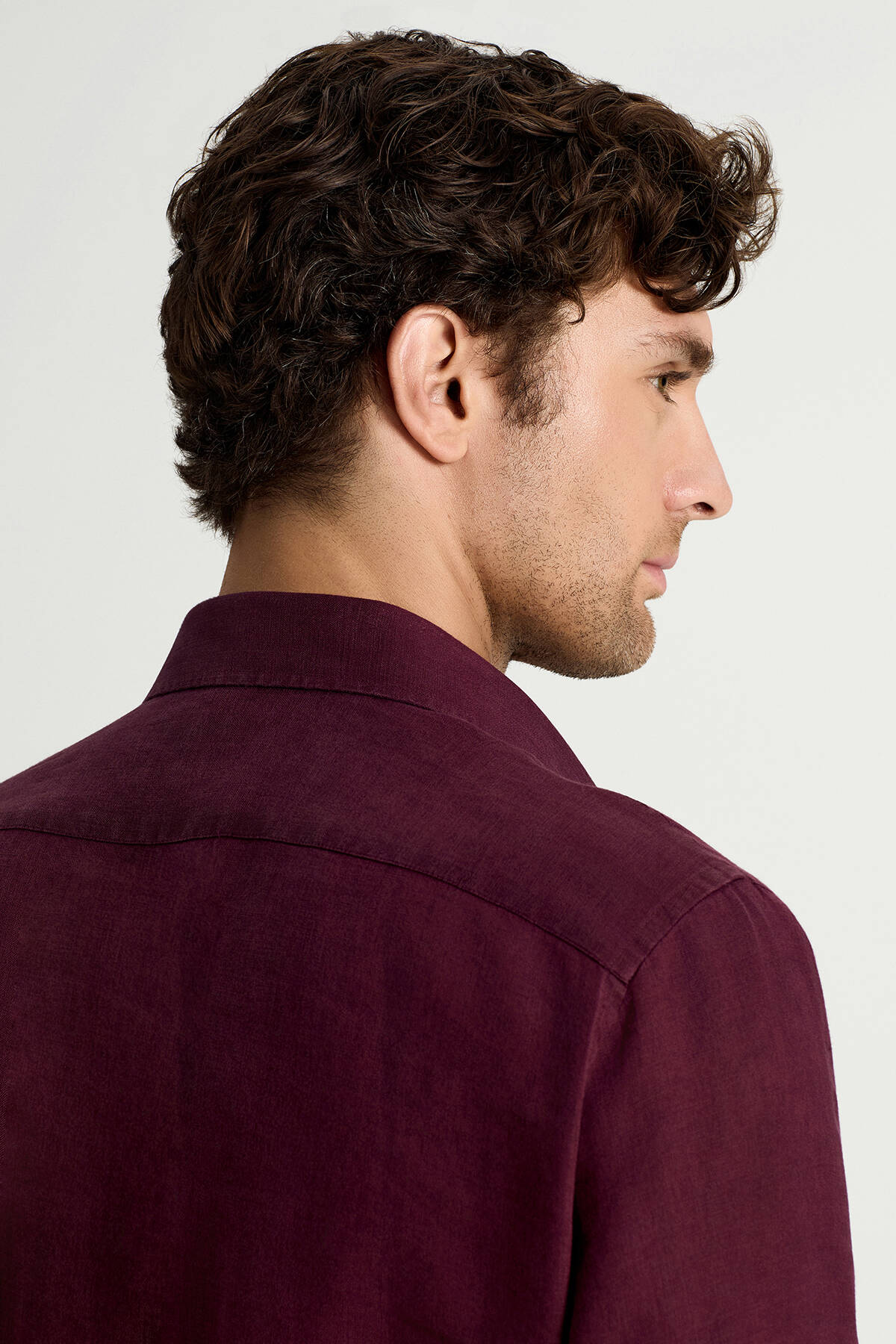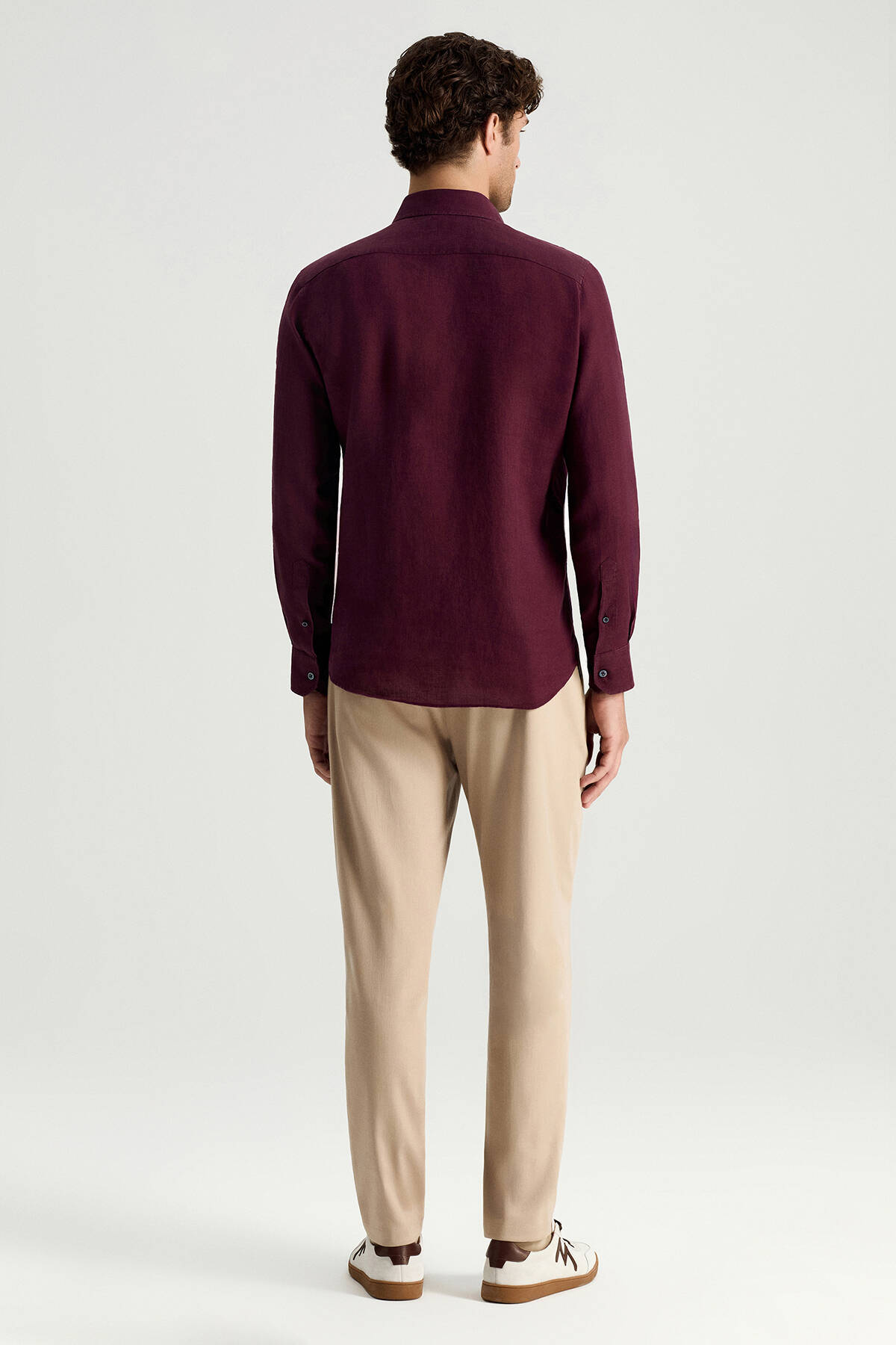 Bordo Saf Keten Spor Gömlek