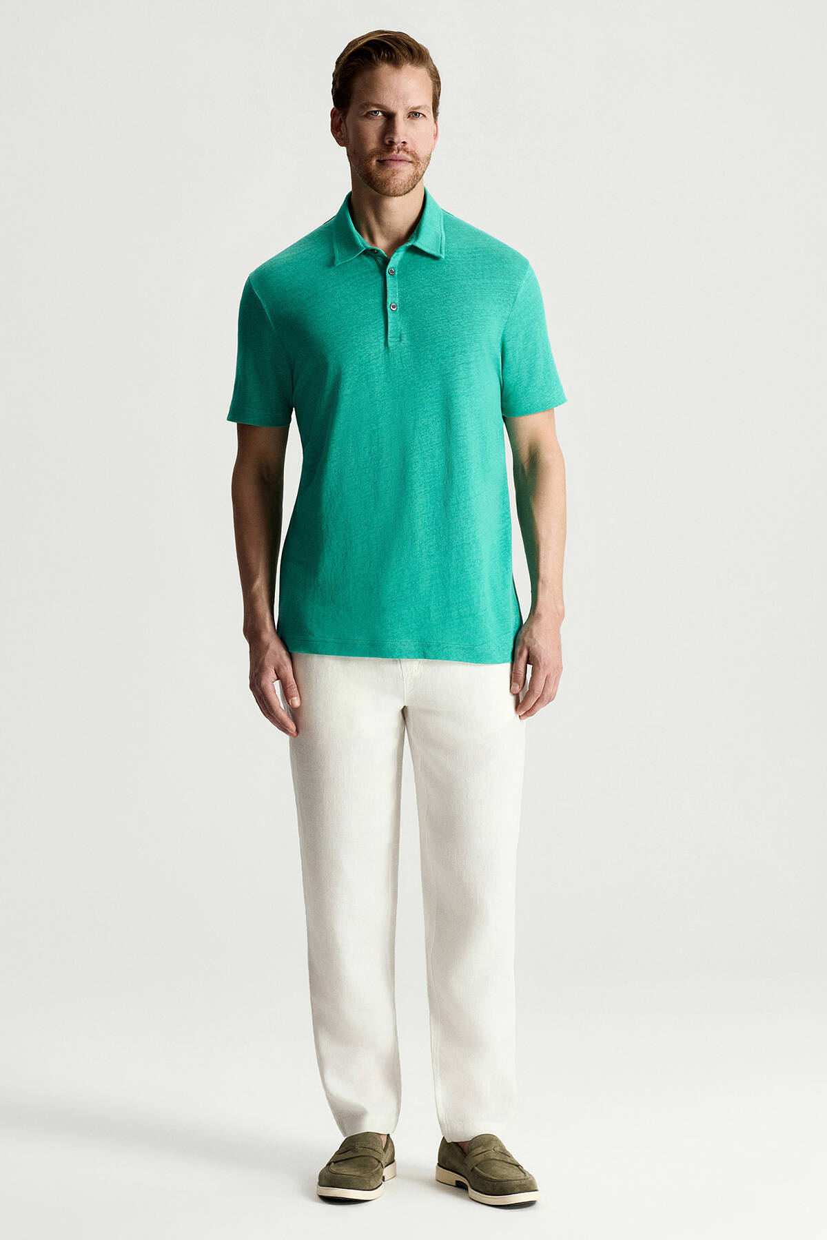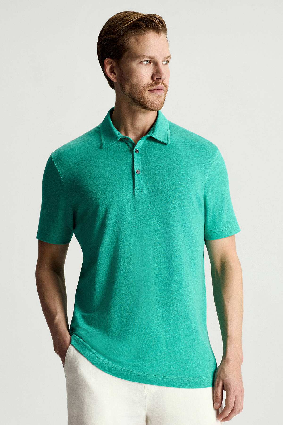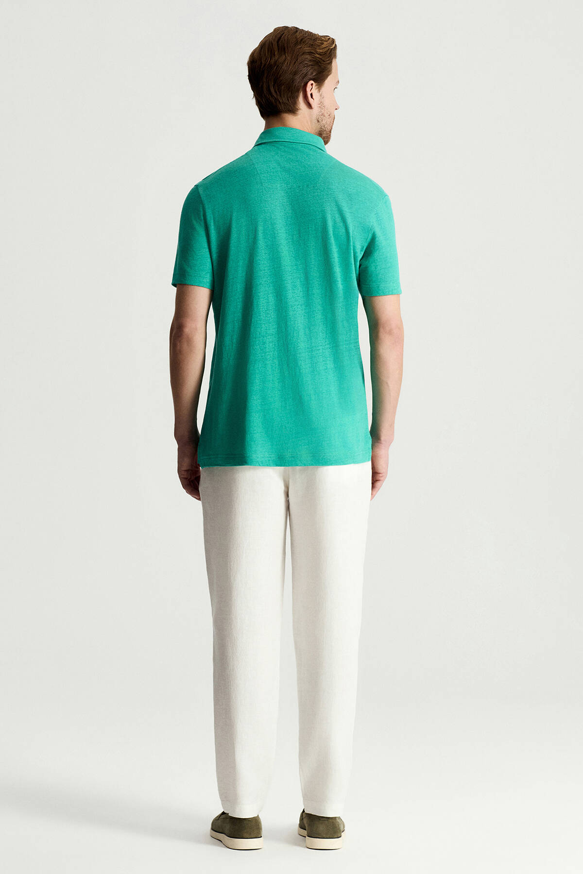 Saf Keten Polo Yaka T-Shirt