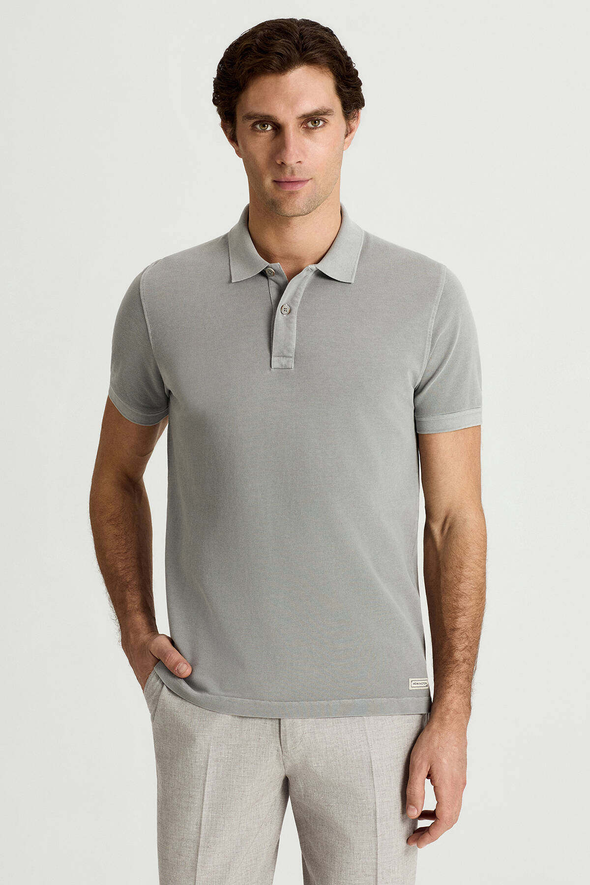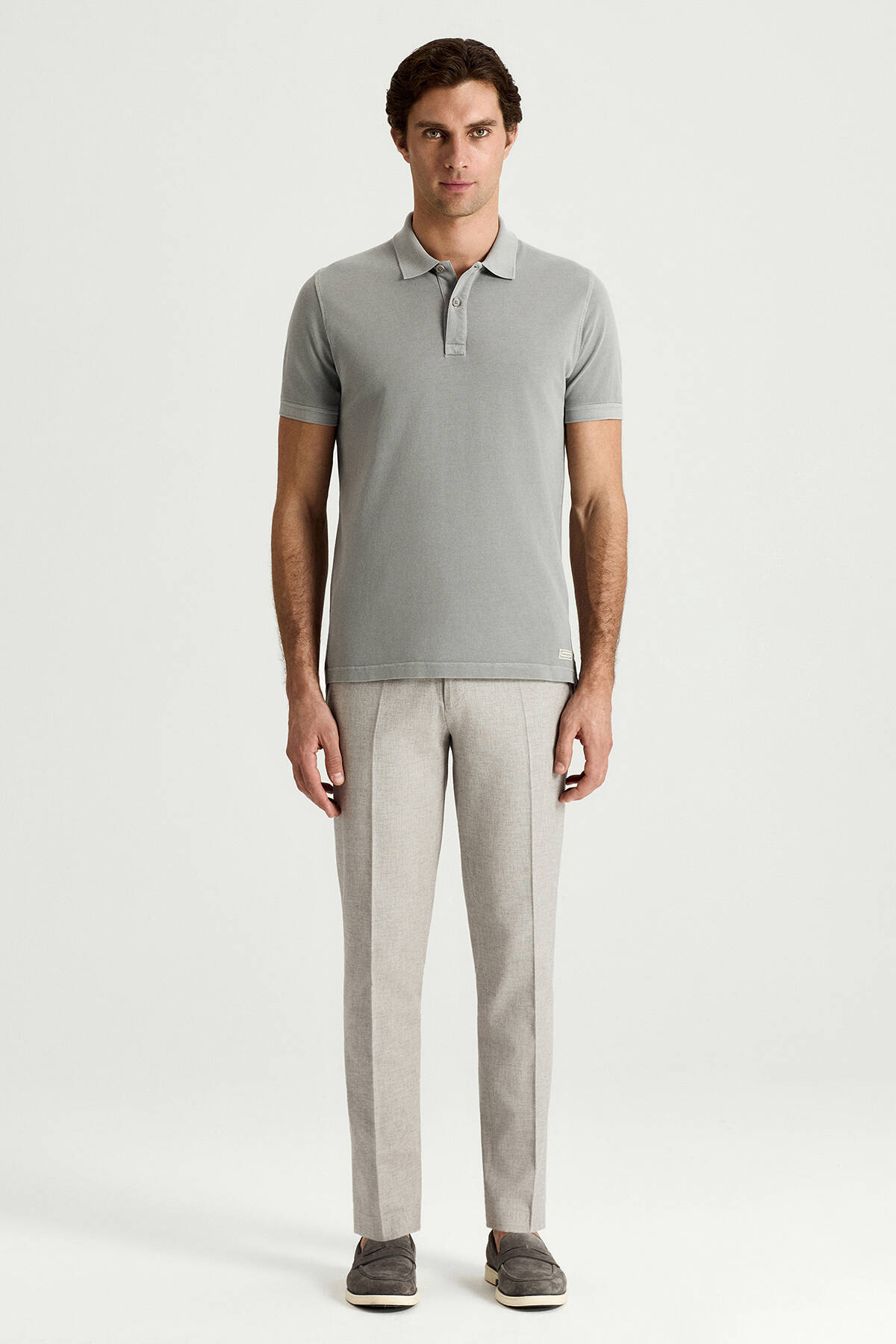 Saf Pamuk Açık Gri Polo Yaka T-Shirt