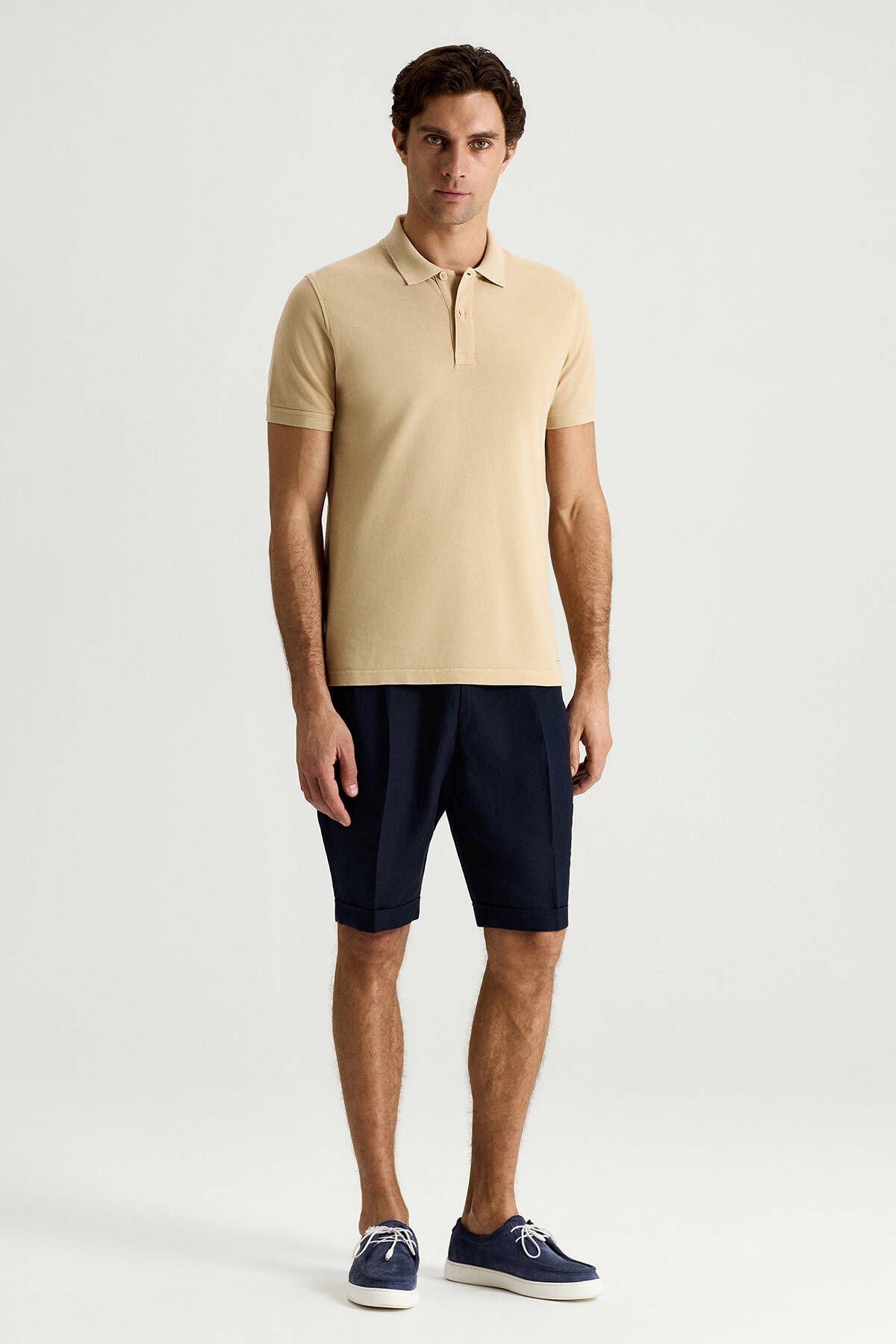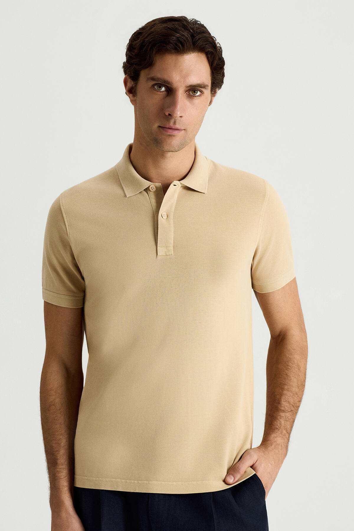 Saf Pamuk Bej Polo Yaka T-Shirt