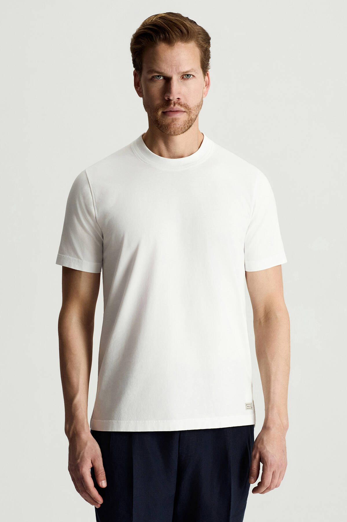 Saf Pamuk Bisiklet Yaka Beyaz T-Shirt
