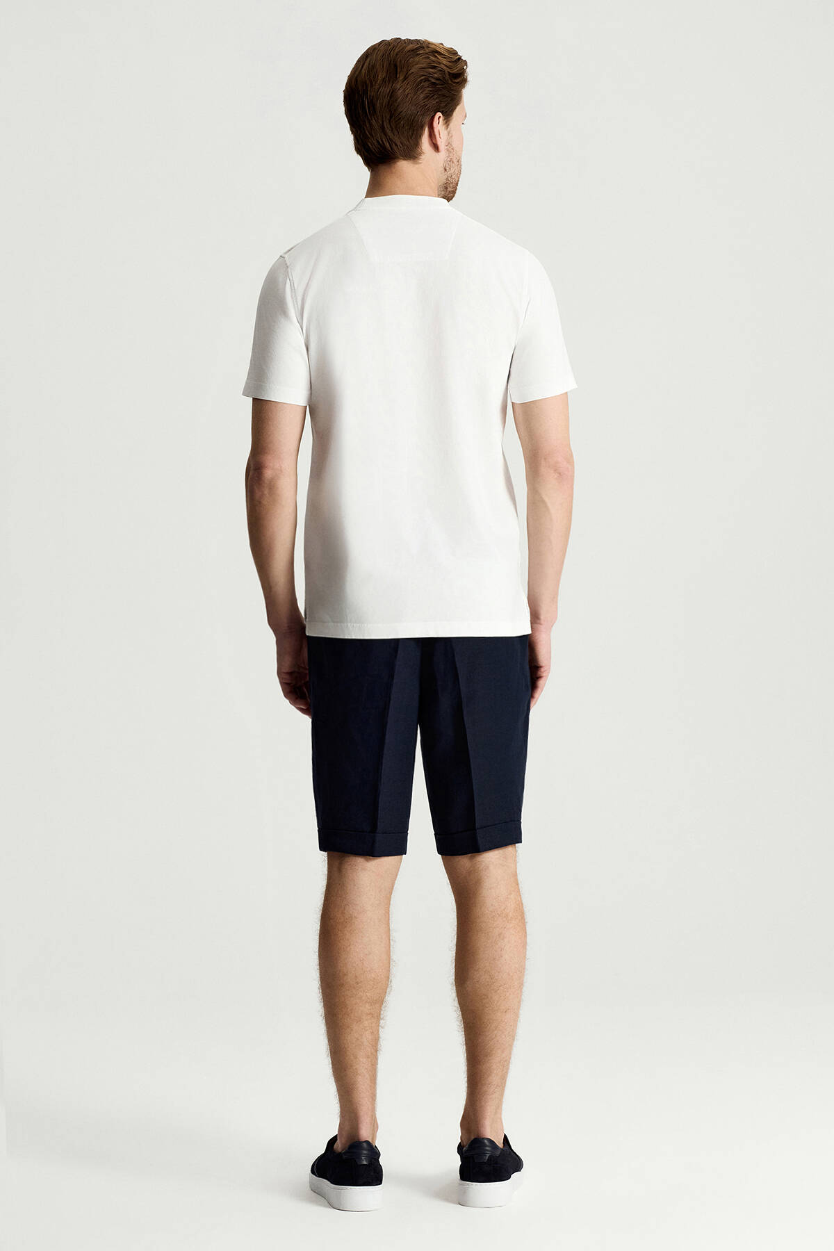 Saf Pamuk Bisiklet Yaka T-Shirt