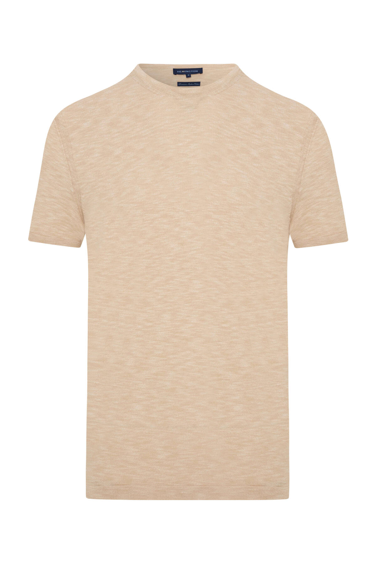 Bisiklet yaka tasarımı ve saf pamuk dokusuyla bu triko t-shirt, açık bej tonu sayesinde doğal ve sıcak bir görünüm sunuyor. Nefes alabilen yapısı ve rahat kesimiyle günlük kullanımda konfor sağlarken, sade ve şık detaylarıyla stilinizi tamamlıyor.
