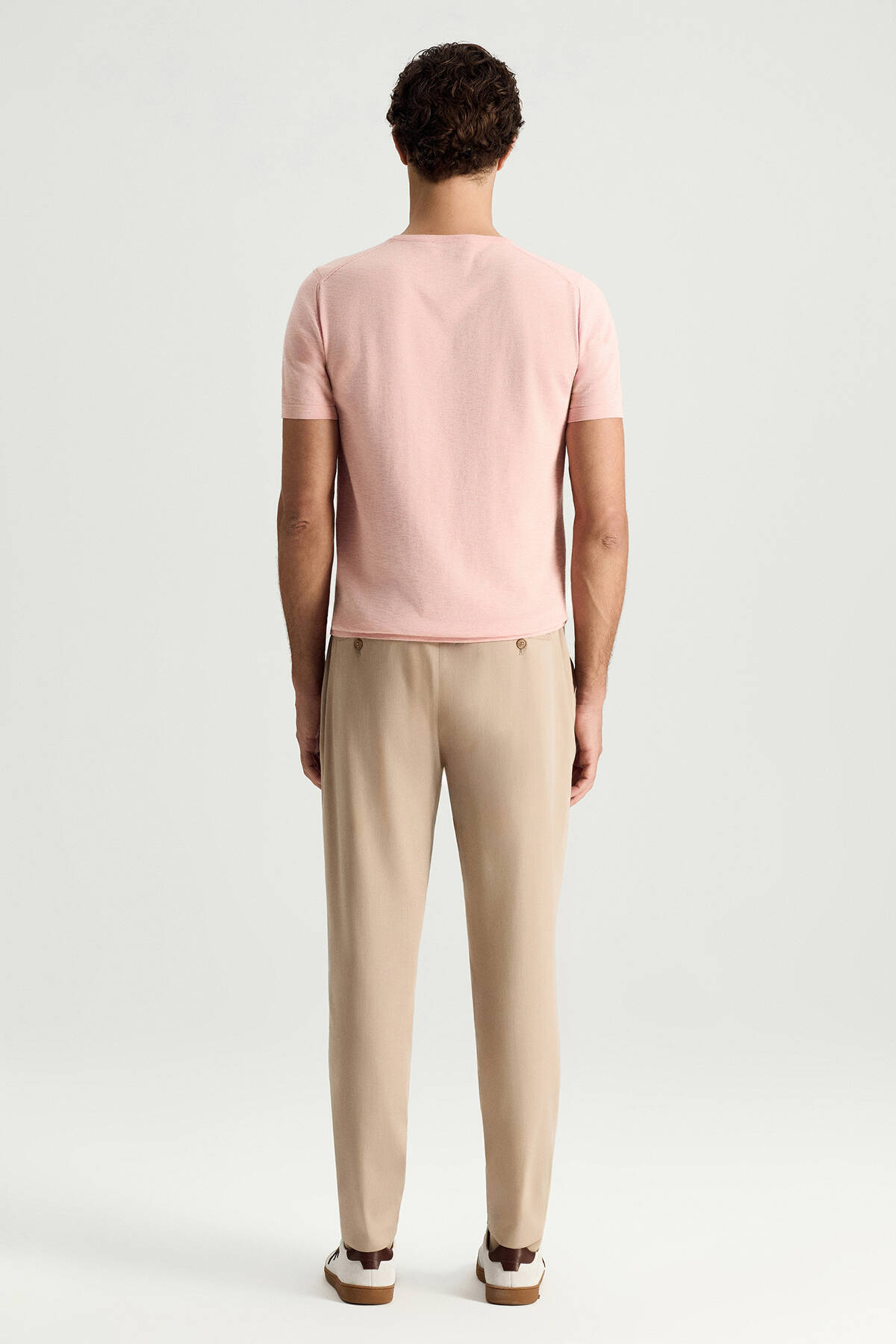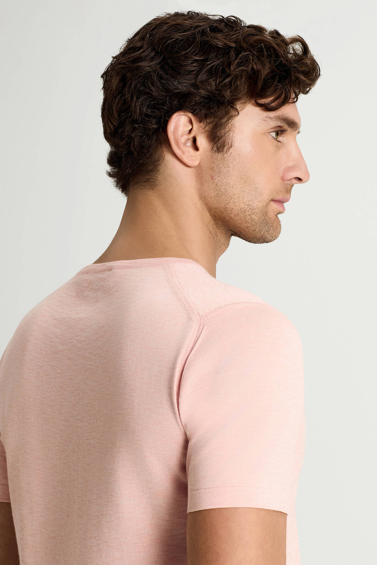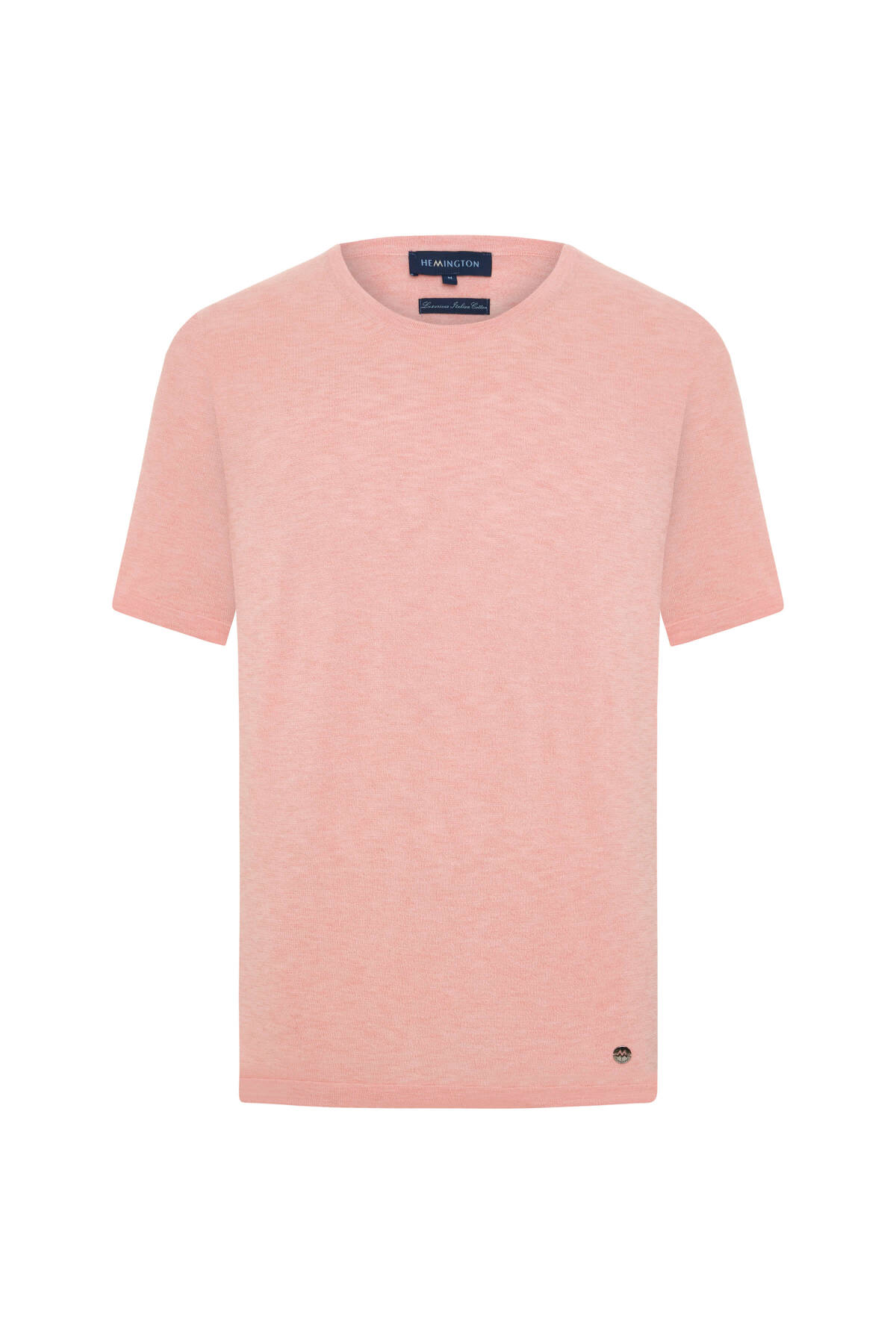 Saf Pamuk Bisiklet Yaka Somon Rengi Triko T-Shirt