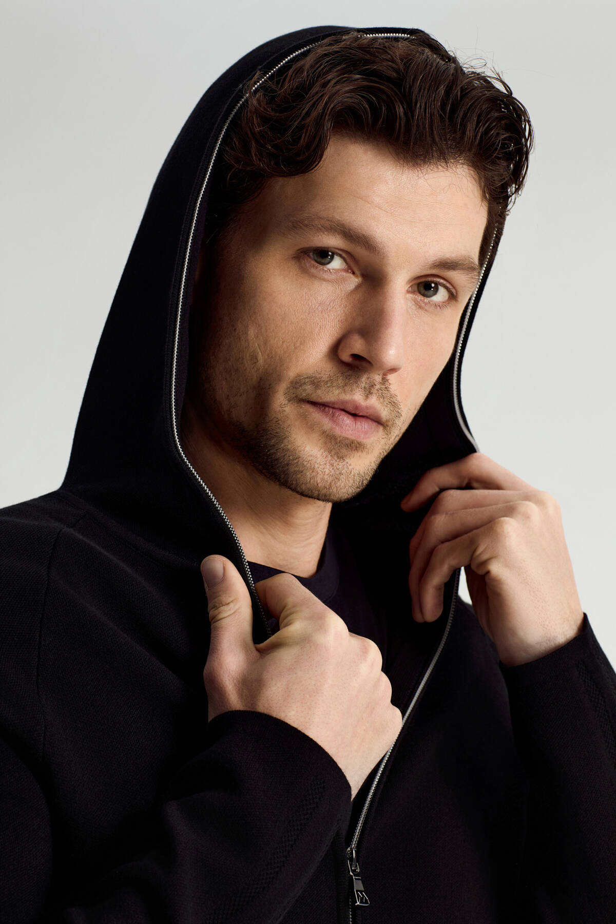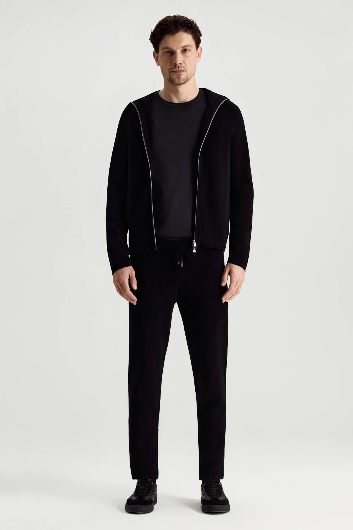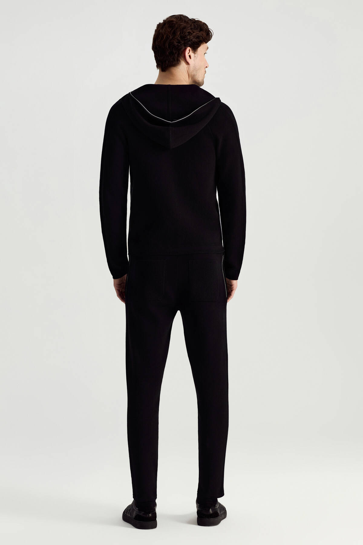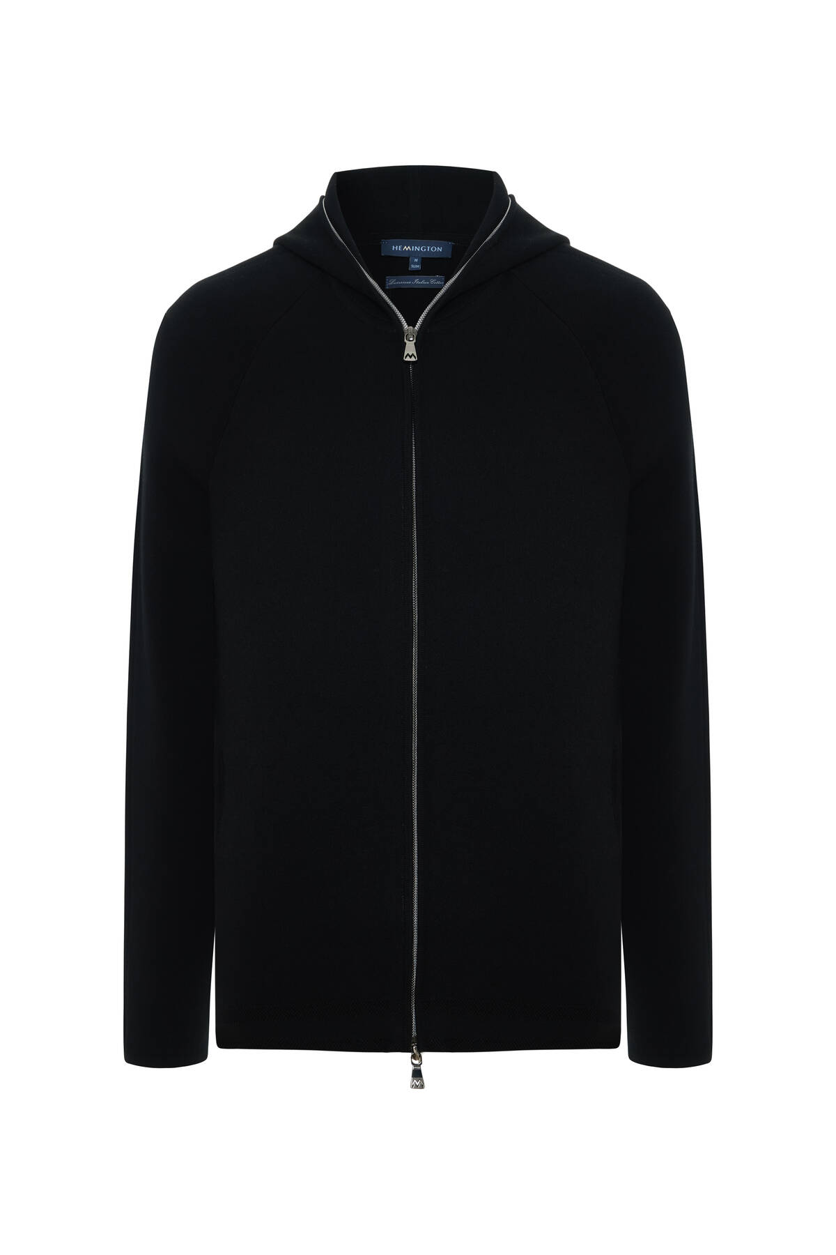 Saf Pamuk Kapüşonlu Slim Fit Siyah Hırka