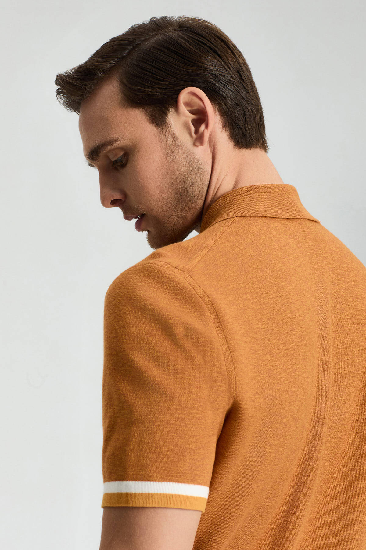 Saf Pamuk Kolları Şerit Detayı Turuncu Triko Polo