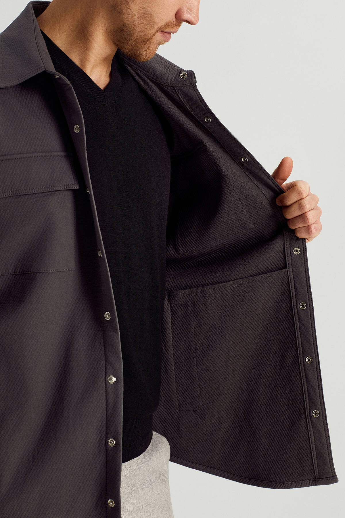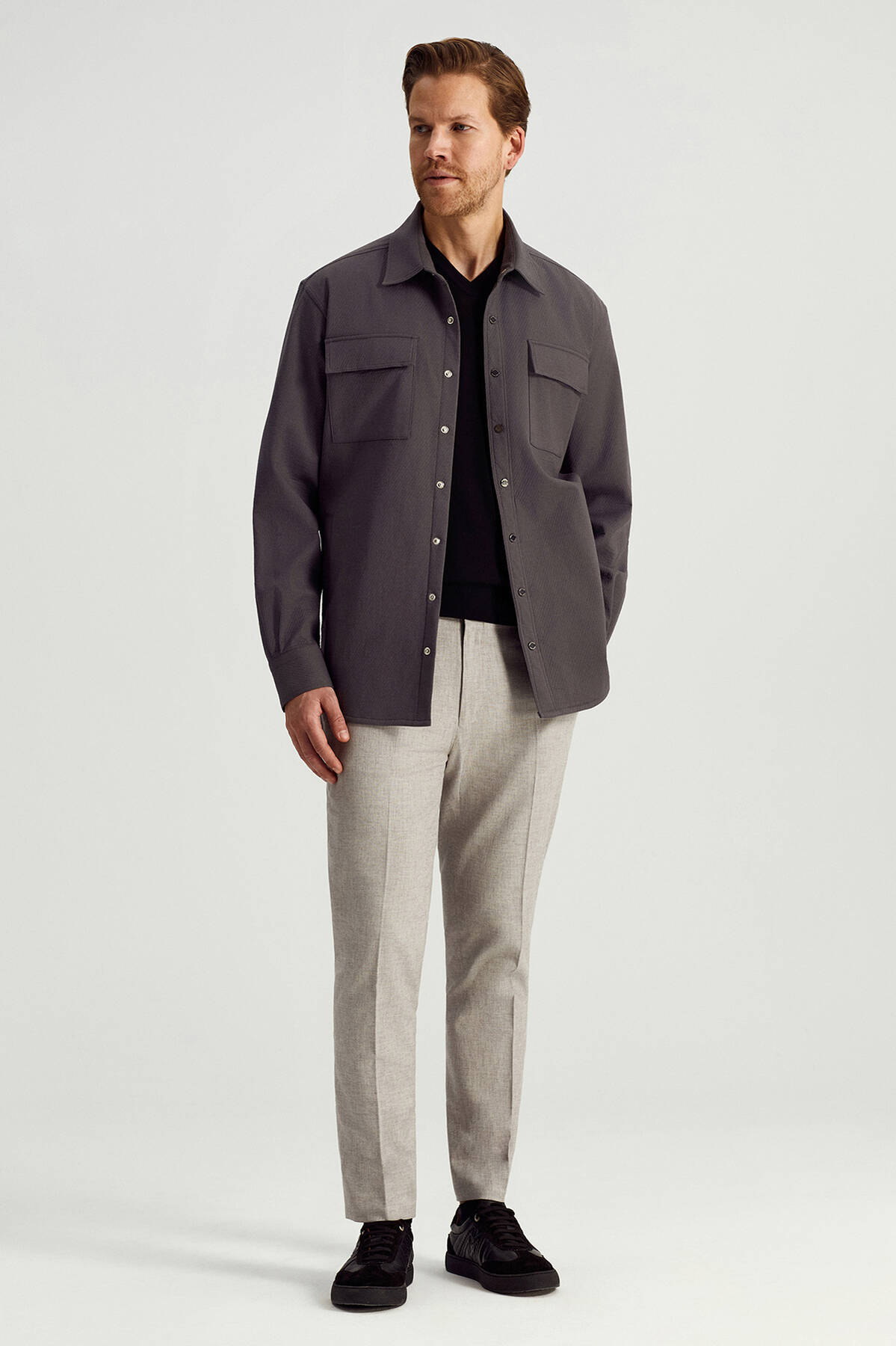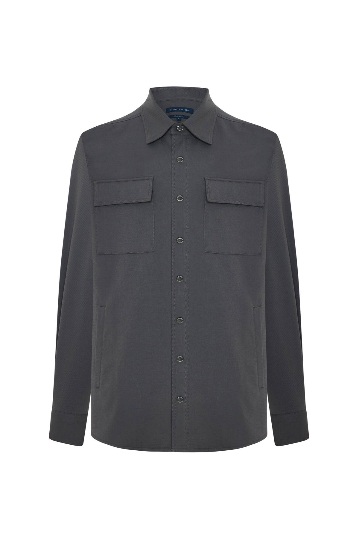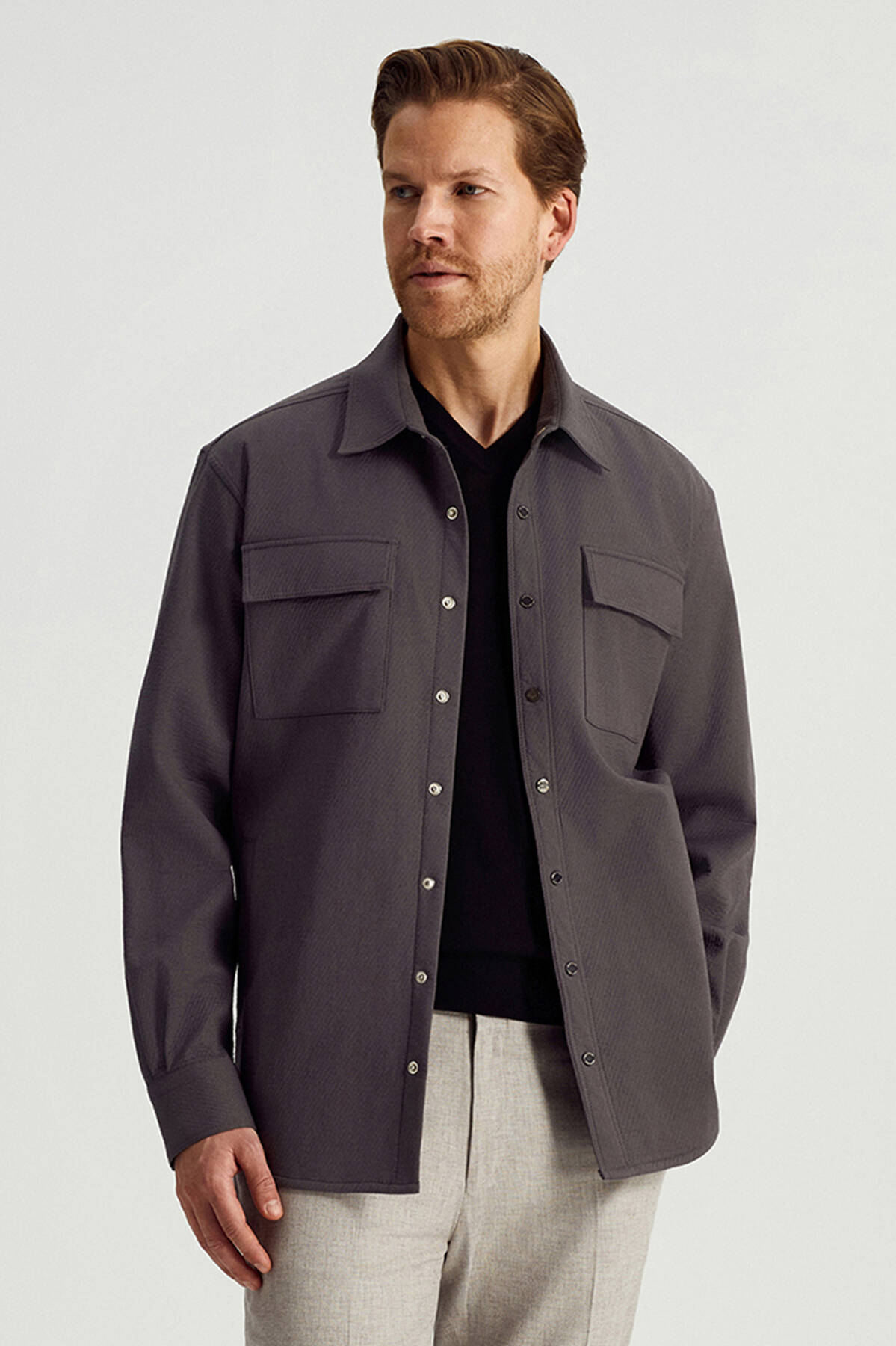 Saf Pamuk Metal Düğmeli Gri Ceket Gömlek