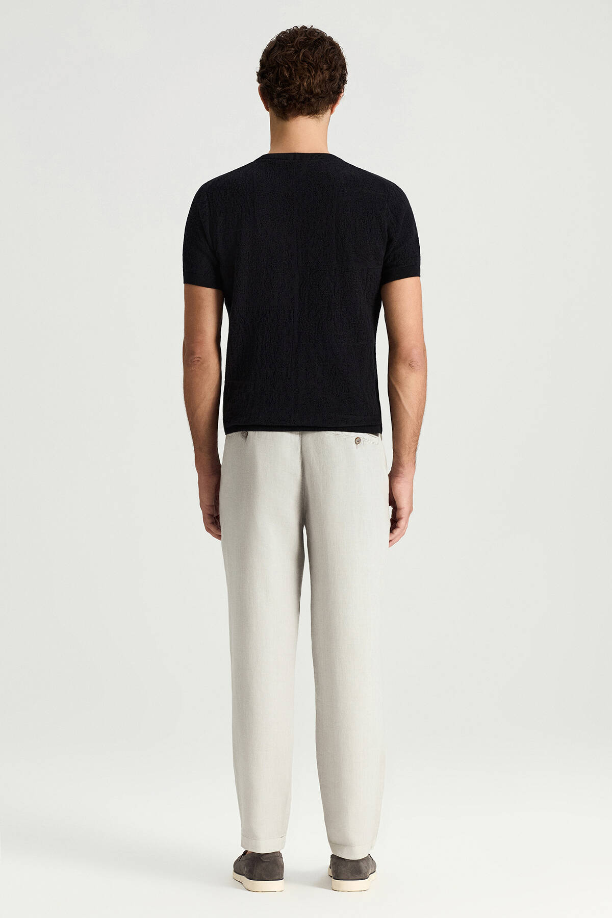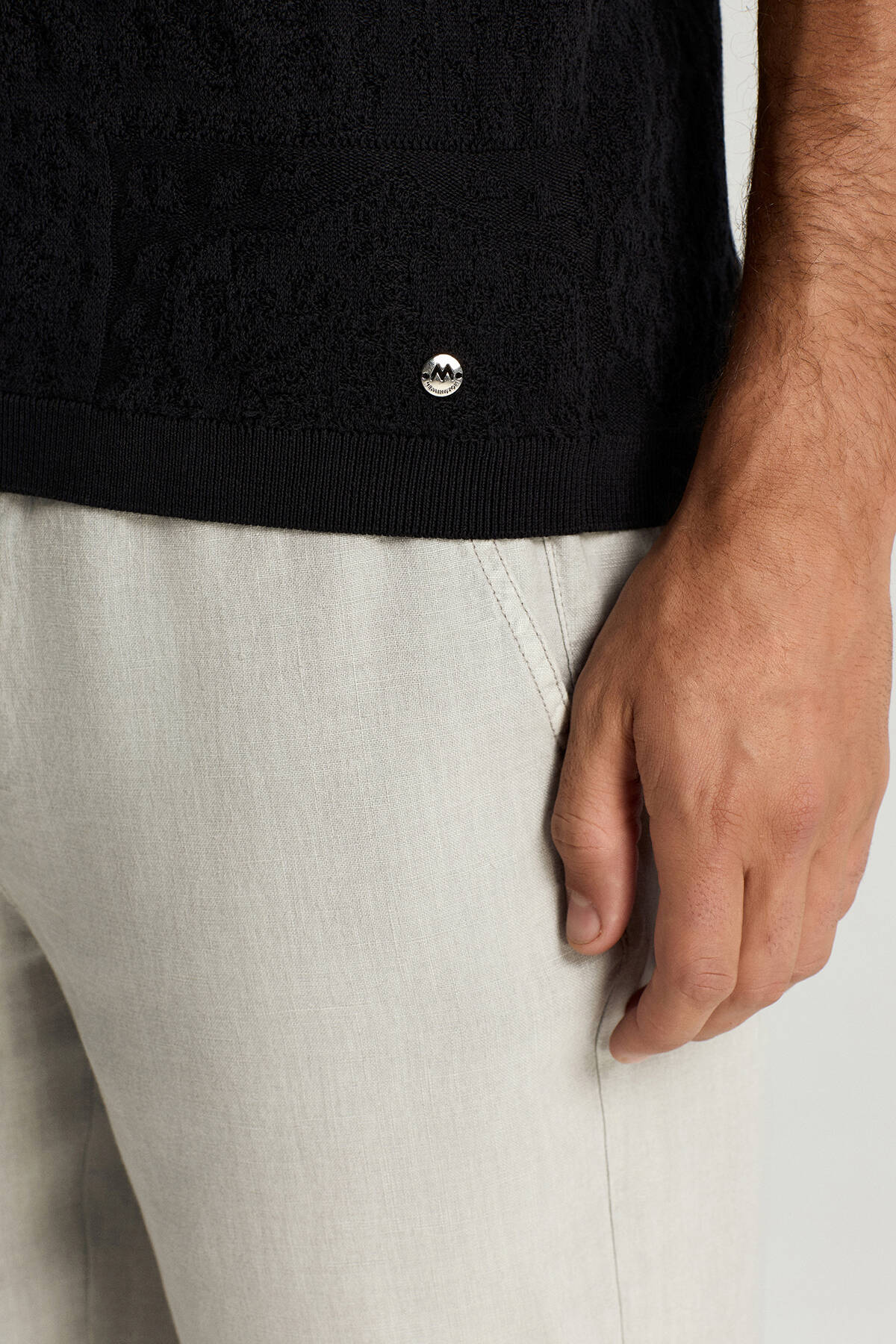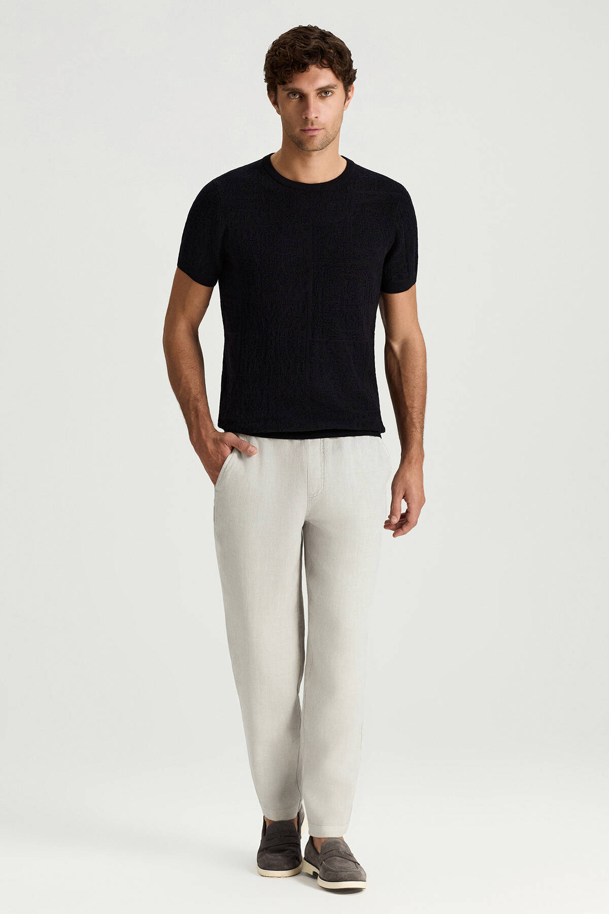 Saf Pamuk Paisley Desen Bisiklet Yaka Siyah Triko T-Shirt