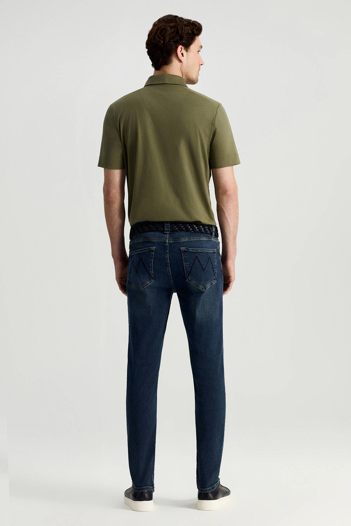 Saf Pamuk Slim Fit Lacivert Taşlanmış Denim Pantolon