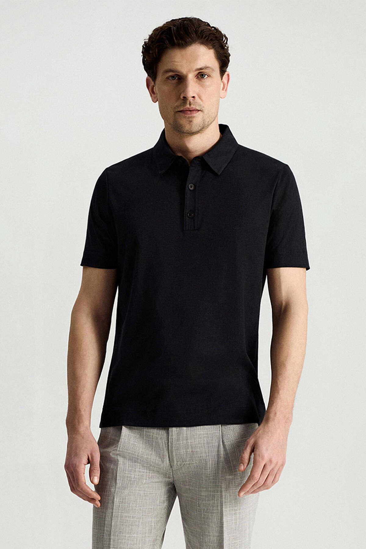 Supima Pamuk Polo Yaka Tencel Siyah T-Shirt