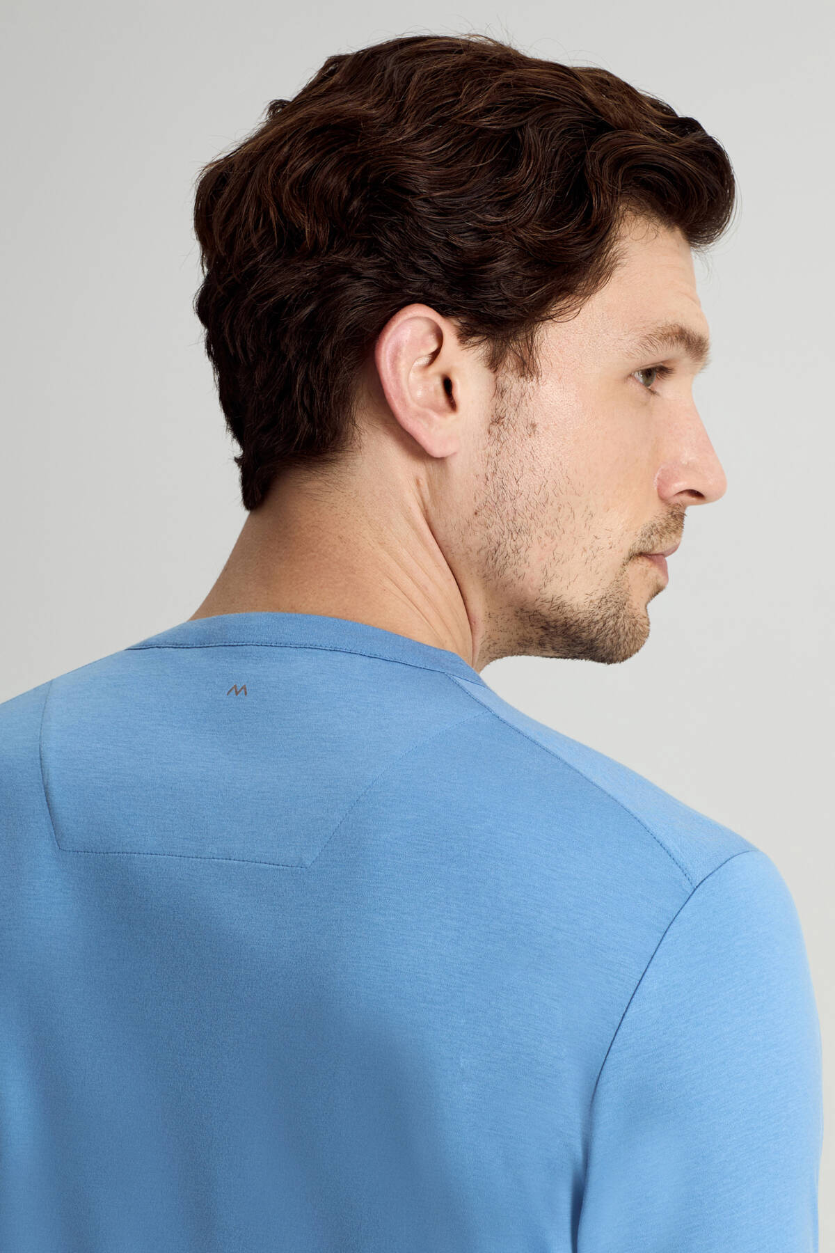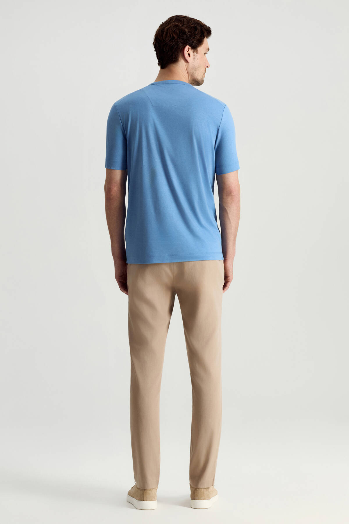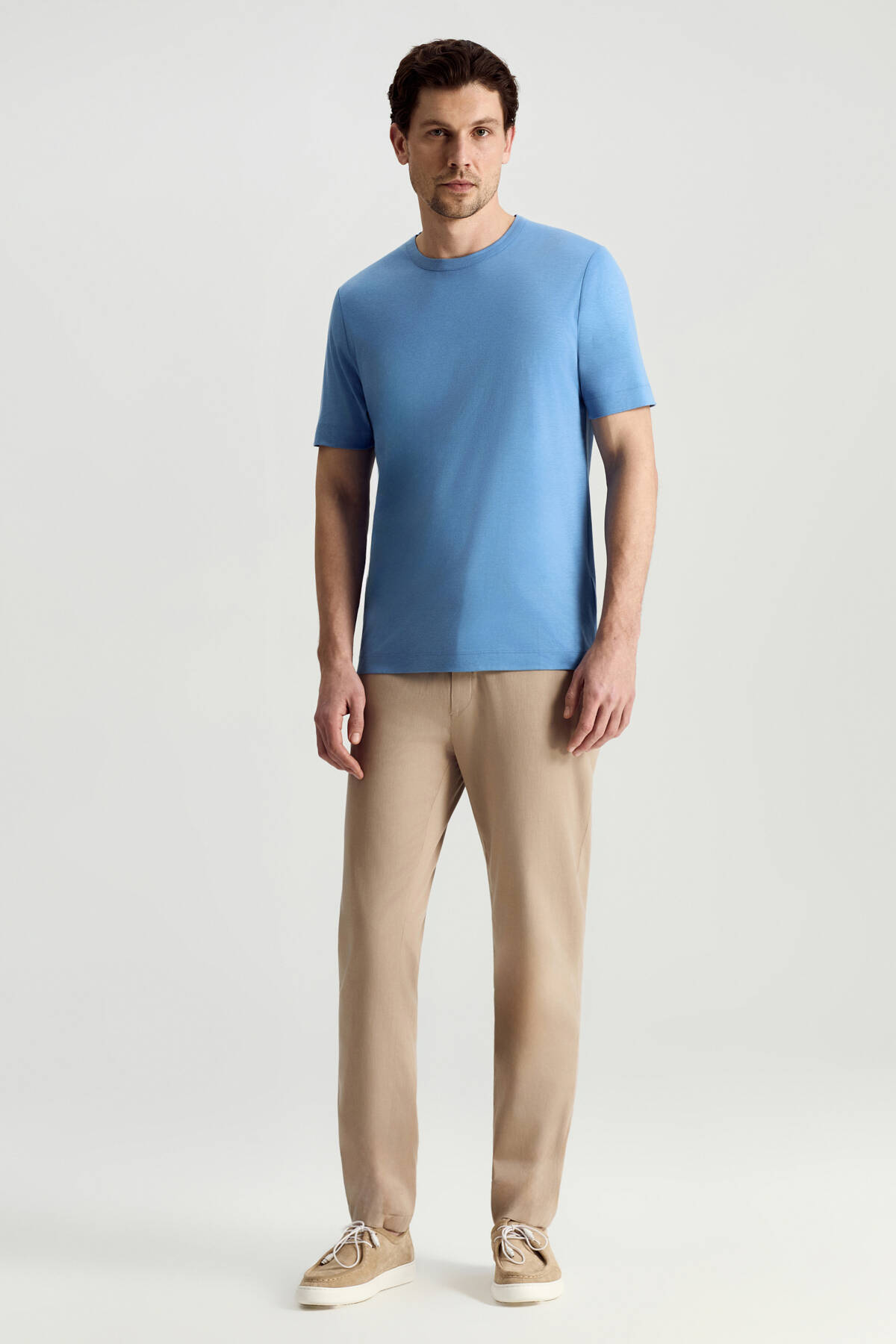 Supima Pamuk Bisiklet Yaka Tencel Mavi T-Shirt