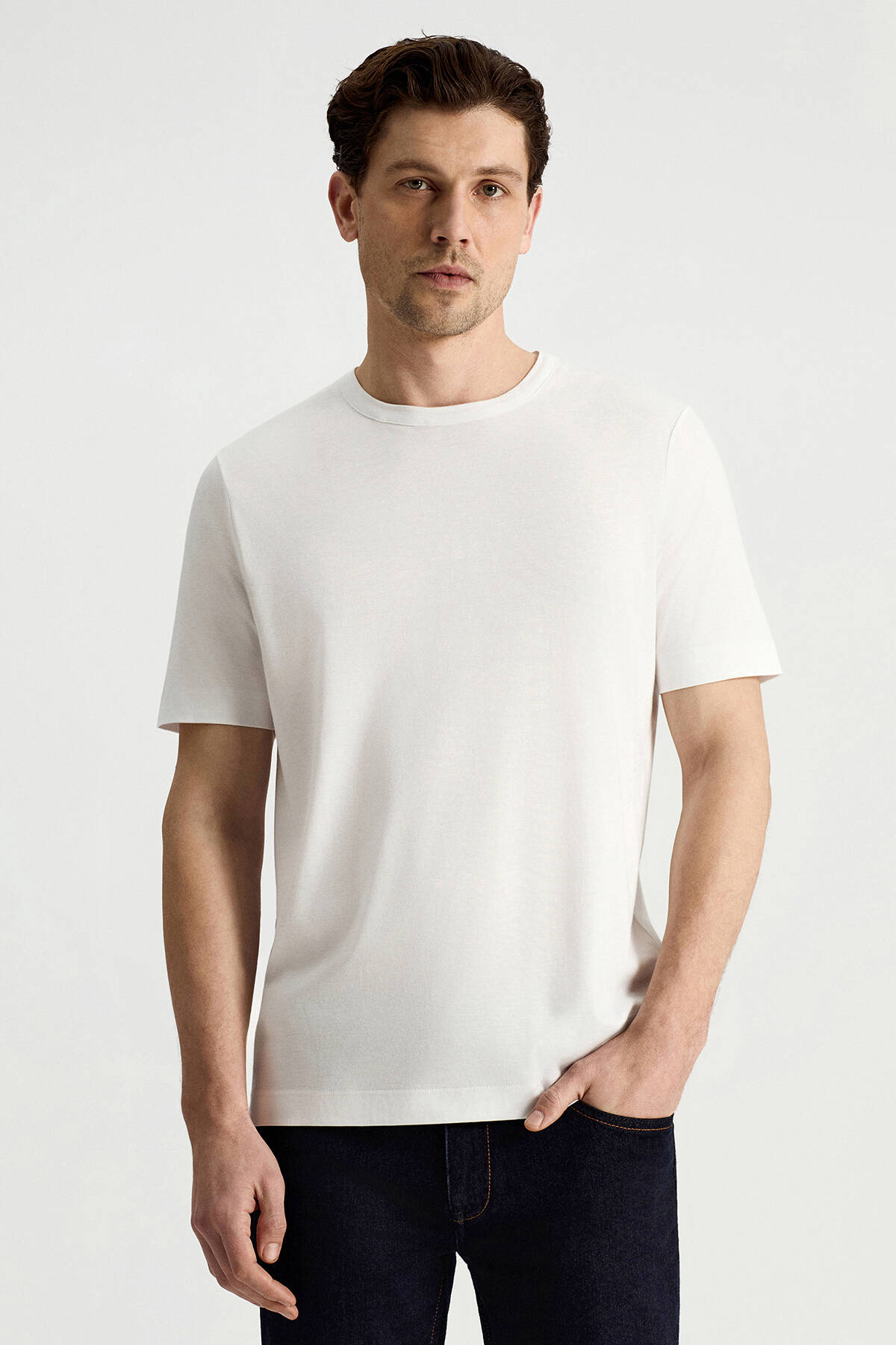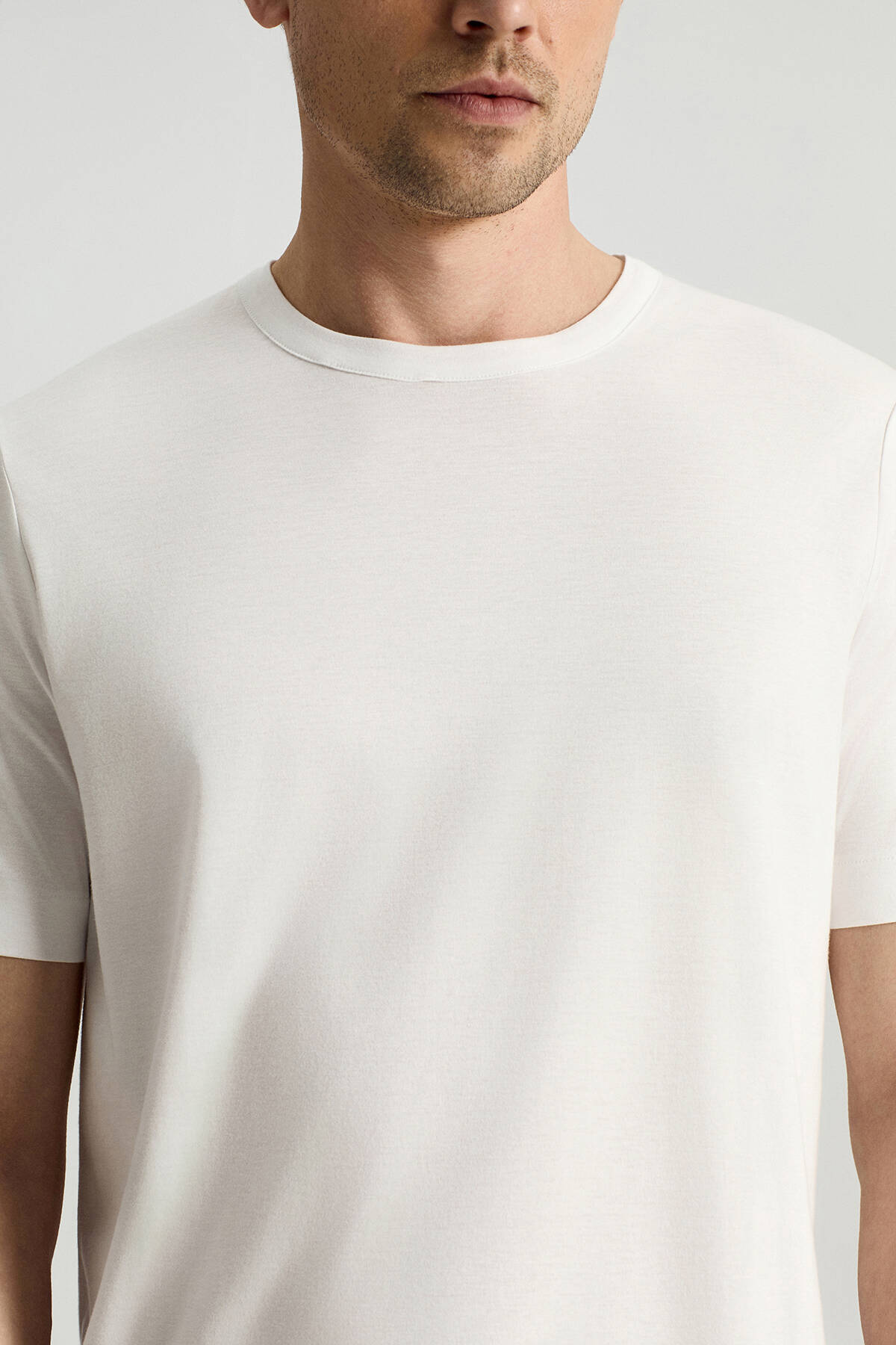 Supima Pamuk Bisiklet Yaka Tencel Beyaz T-Shirt