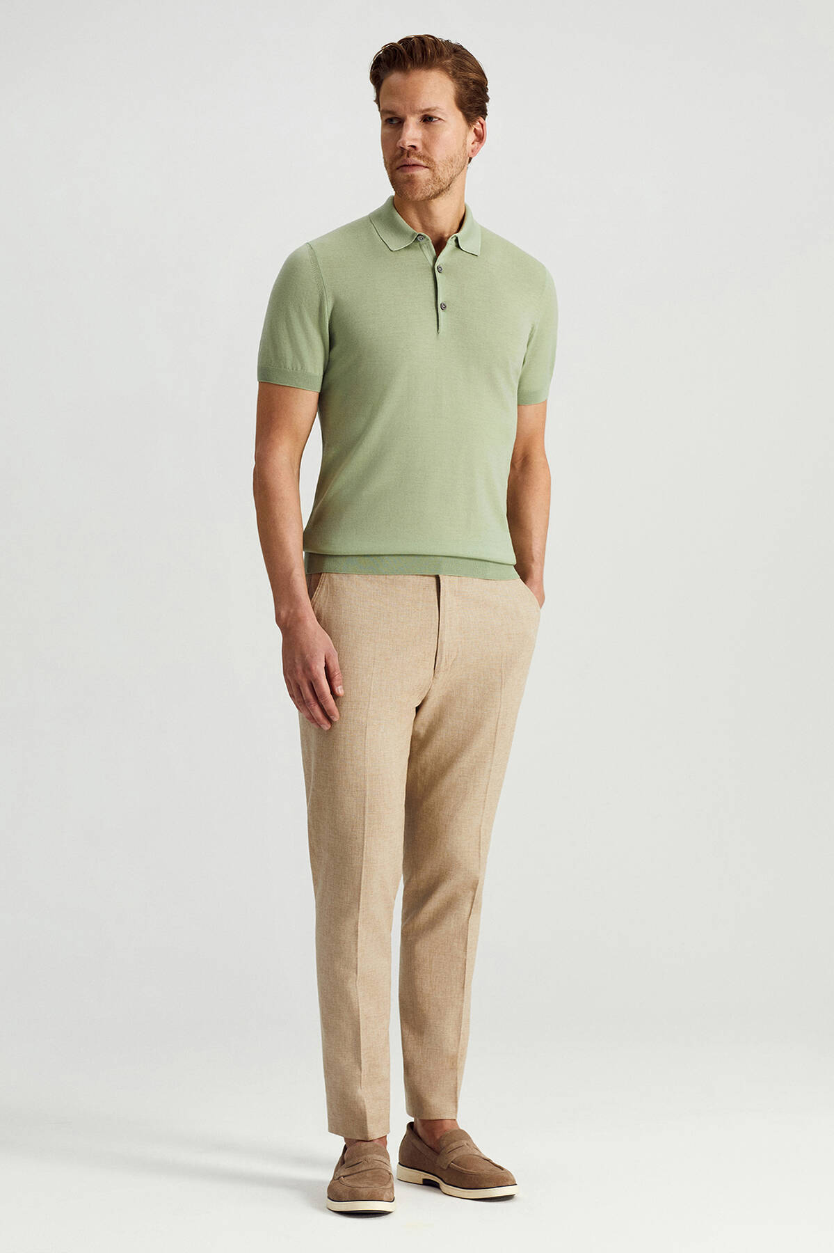 Ultrafine Merino Yünü Açık Yeşil Triko Polo