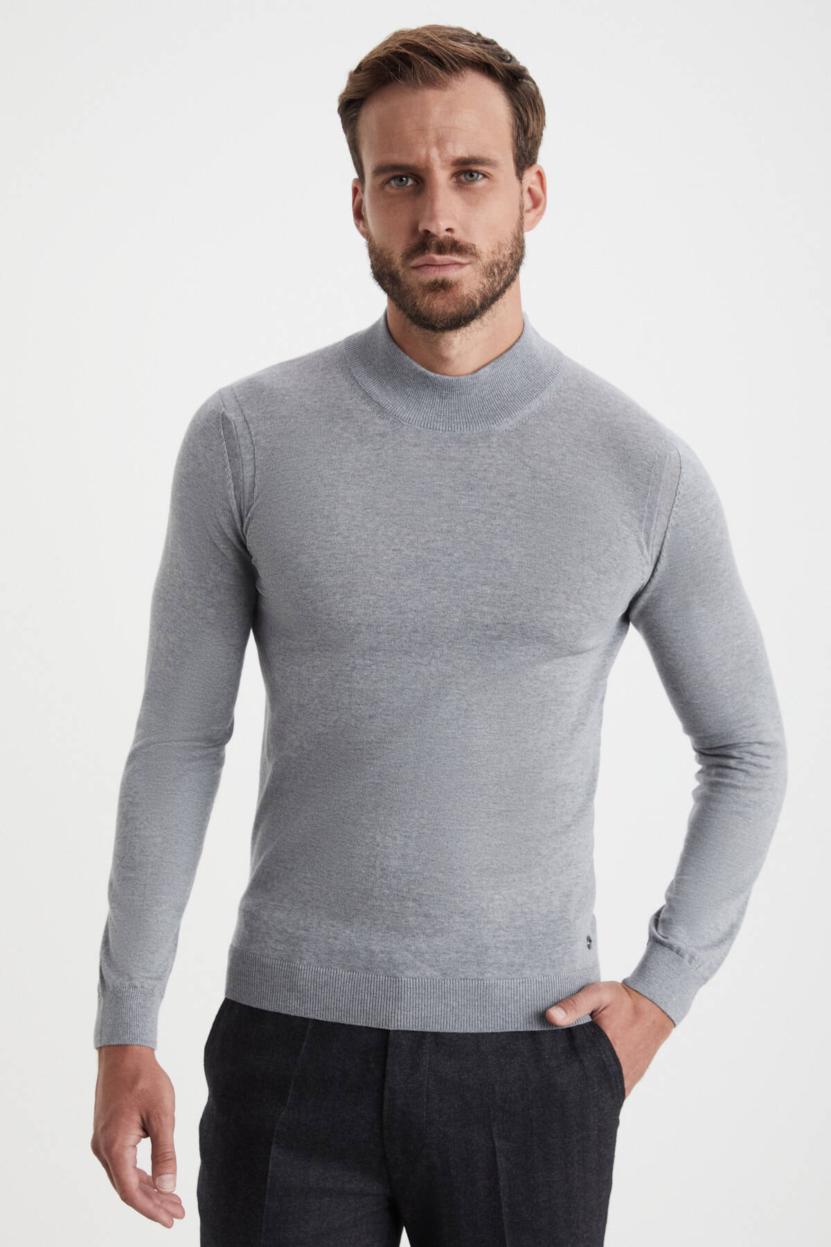 Erkek giyim kombinlerinin vazgeçilmezi lupetto yaka açık gri kazak, Merino yün kalitesi ile keşfedilmeyi bekliyor. Her mevsim giyime uygun ince ve nefes alan %100 doğal Merino yününden üretilen triko, zamansız modeli ve rengi ile dolabınızın kurtarıcı parçalarından olmaya adaydır. Triko detayları ve rahat kalıbı ile zamansız şıklık sunar. Terletmez, uzun yıllar canlı rengini ve formunu korur.