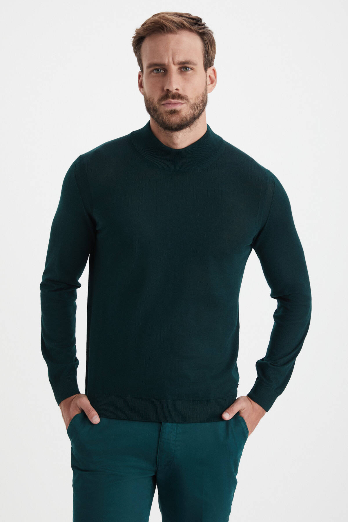 Yarım Balıkçı Yaka Merino Yün Koyu Yeşil Triko