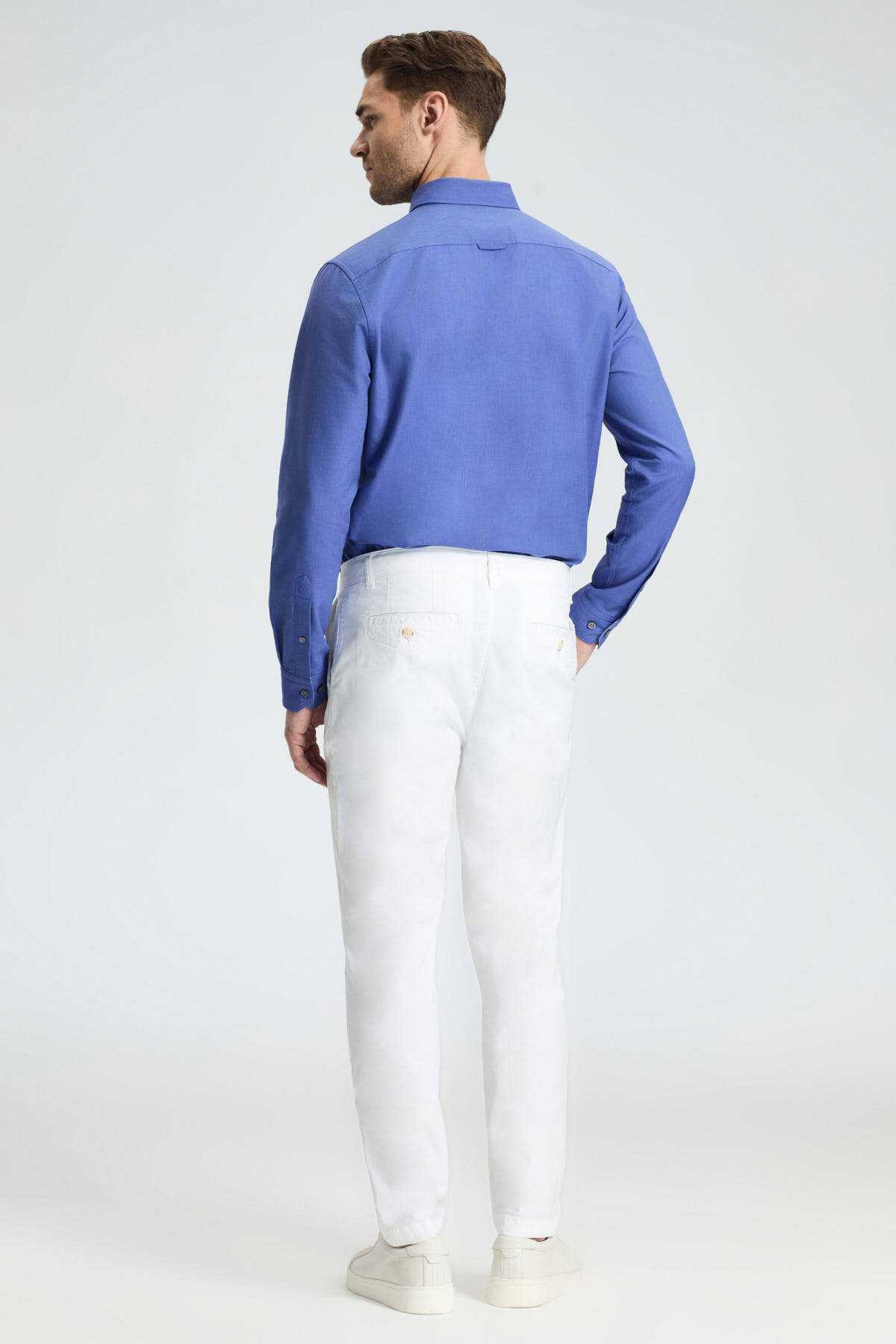 Birinci sınıf pamuktan dokunmuş, yaza uygun nefes alan kumaşı, mükemmel kalıbı, ideal bel yüksekliği ve paça genişliği ile Smart Casual tarzdaki bu chino pantolon, şık ve konforlu bir kullanım sunuyor.