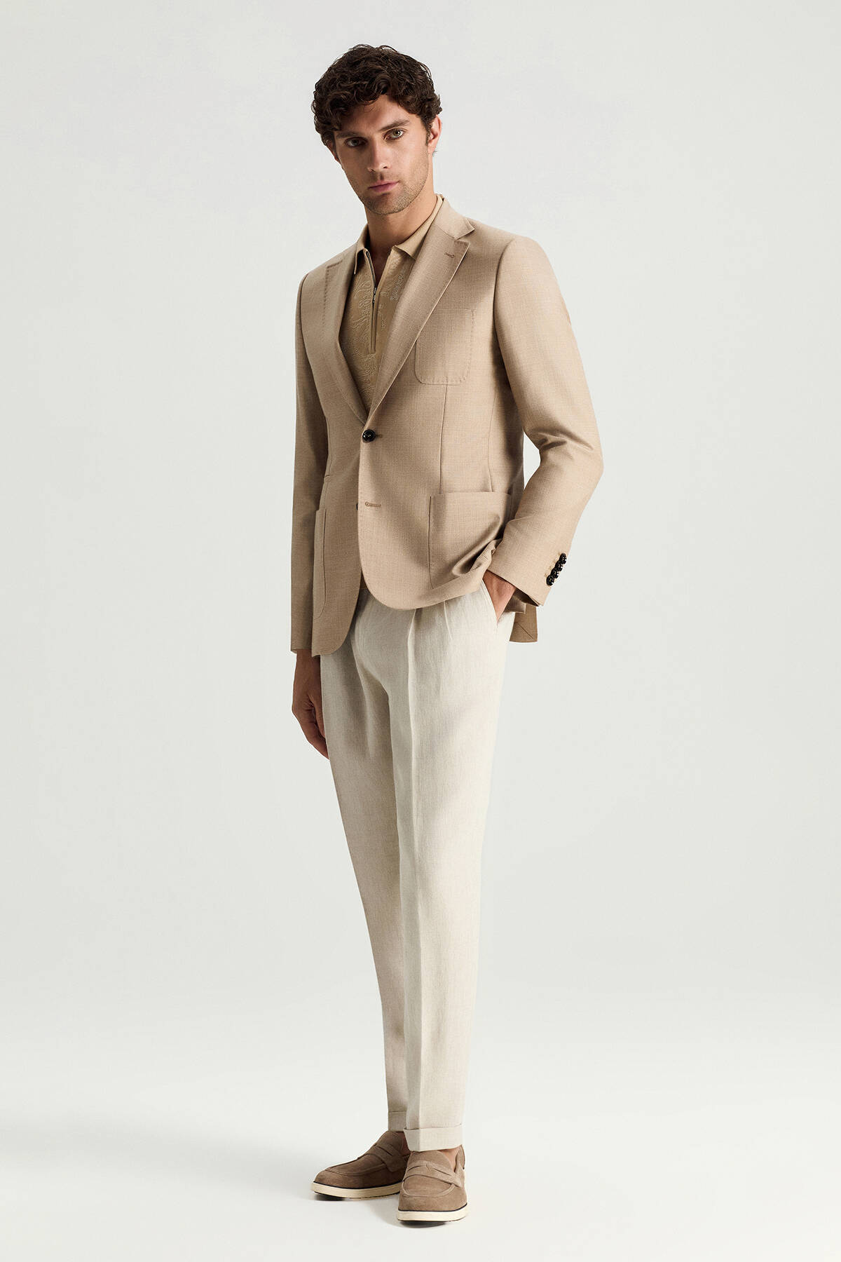 Birinci sınıf kalitede yün ile harmanlanan keten lifleri, daha dengeli bir forma sahip olur. Bu karışım sayesinde kumaş hem daha az kırışır hem de formunu uzun süre korur. Doğal yün lifleri sayesinde sıcaklık yalıtımı artarken, ketenin kendine has dokusu ve ışıltısı korunur. Keten ve yünün doğallığına sadık kalınarak üretilen kumaşlar, nefes alan yapıları ve vücut ısısını dengeleyen özellikleri sayesinde özellikle mevsim geçişlerinde ideal bir tercih haline gelir.