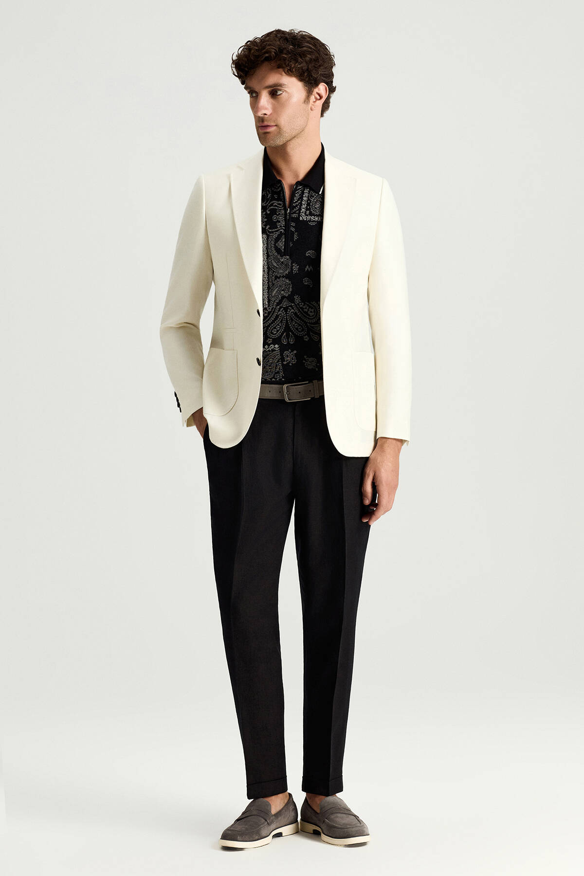 Birinci sınıf kalitede yün ile harmanlanan keten lifleri, daha dengeli bir forma sahip olur. Bu karışım sayesinde kumaş hem daha az kırışır hem de formunu uzun süre korur. Doğal yün lifleri sayesinde sıcaklık yalıtımı artarken, ketenin kendine has dokusu ve ışıltısı korunur. Keten ve yünün doğallığına sadık kalınarak üretilen kumaşlar, nefes alan yapıları ve vücut ısısını dengeleyen özellikleri sayesinde özellikle mevsim geçişlerinde ideal bir tercih haline gelir.